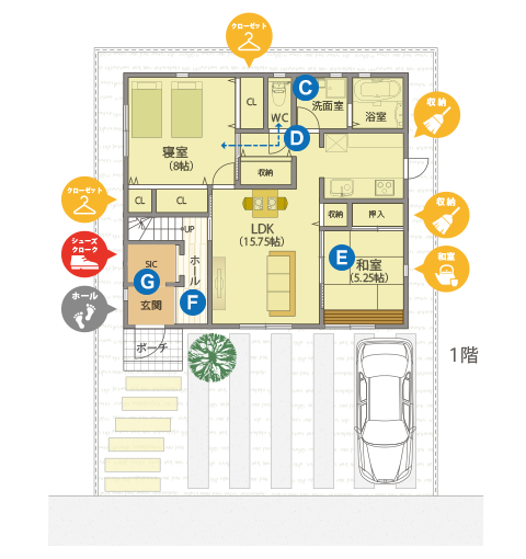 1階洋室からトイレまでの距離が近く、就寝時も便利で安心してお休みいただけます