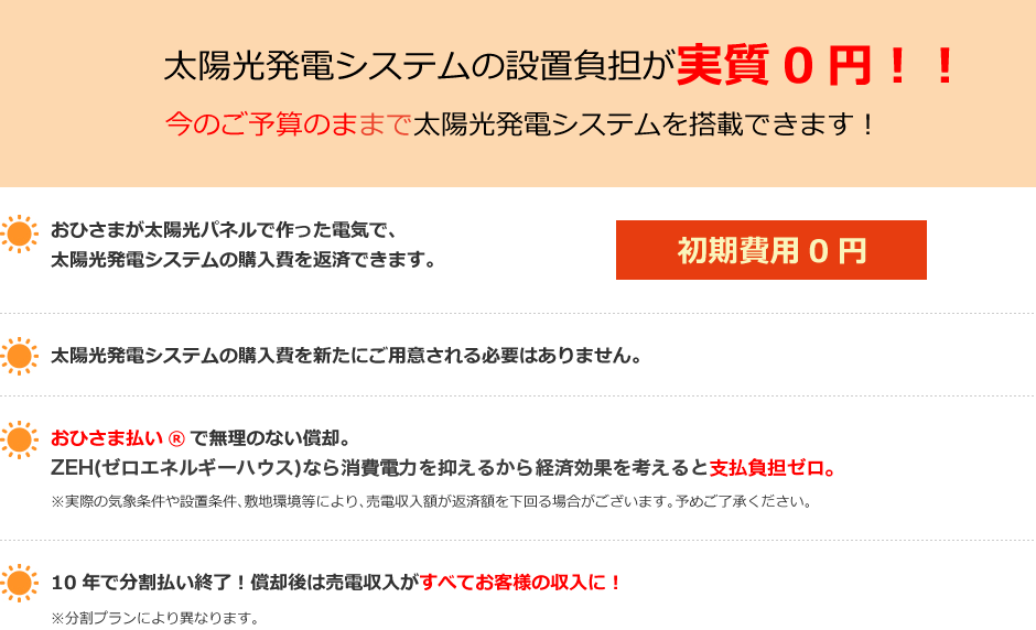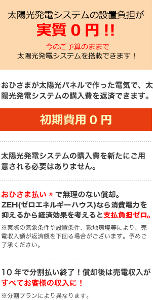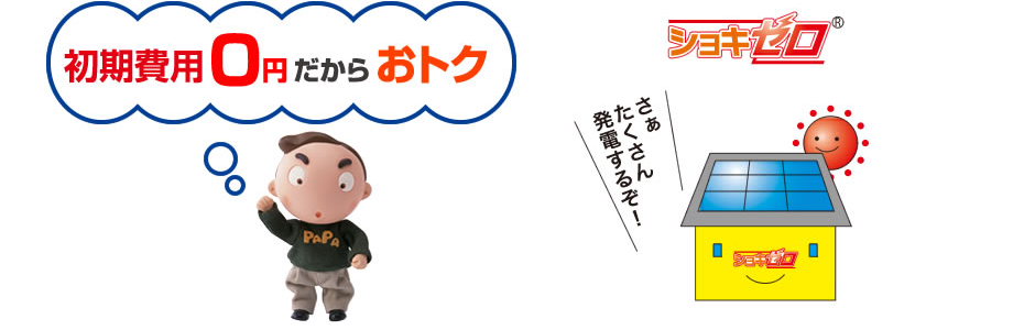 地球にも家計にもやさしいクリーンなエネルギーの太陽光発電システムを初期費用ゼロ円で設置する支払いシステム ショキゼロ®。