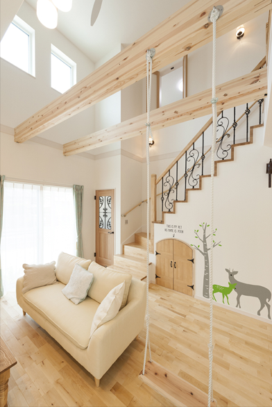 階段を上がり、目の前に広がるのは、心が解き放たれる、笑顔溢れる特別な空間。 自宅なのに少し非日常。なんだかわくわくする気持ち。
