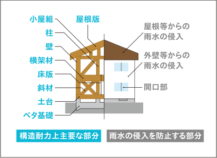 新築住宅には、住宅の基本構造部分(柱や梁など住宅の構造耐久上主要な部分や雨水の侵入を防止する部分)に関して「住宅品質確保法」により10年間の保証期間が定められているため、住宅会社の保証期間は10年間というのが一般的です。