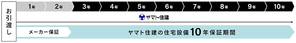 建物だけでなく住宅設備機器にもメーカーが付与する保証を含めた10年保証を導入しております。