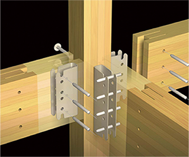 木造軸組接合部の欠損・抜けを防ぐ、金物工法。
