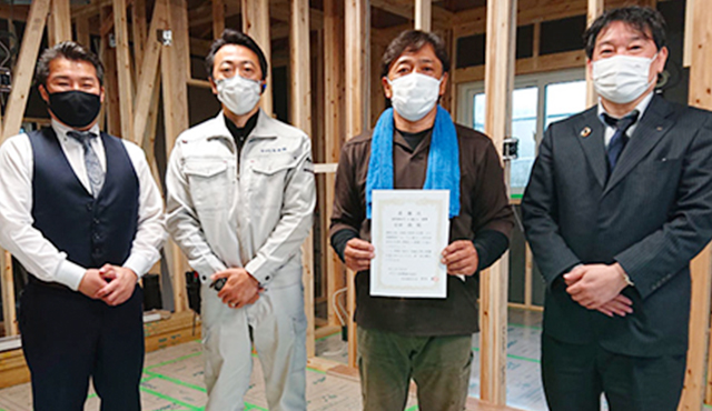 ▲住宅建設においてC値0.1以下を達成した大工さんの表彰