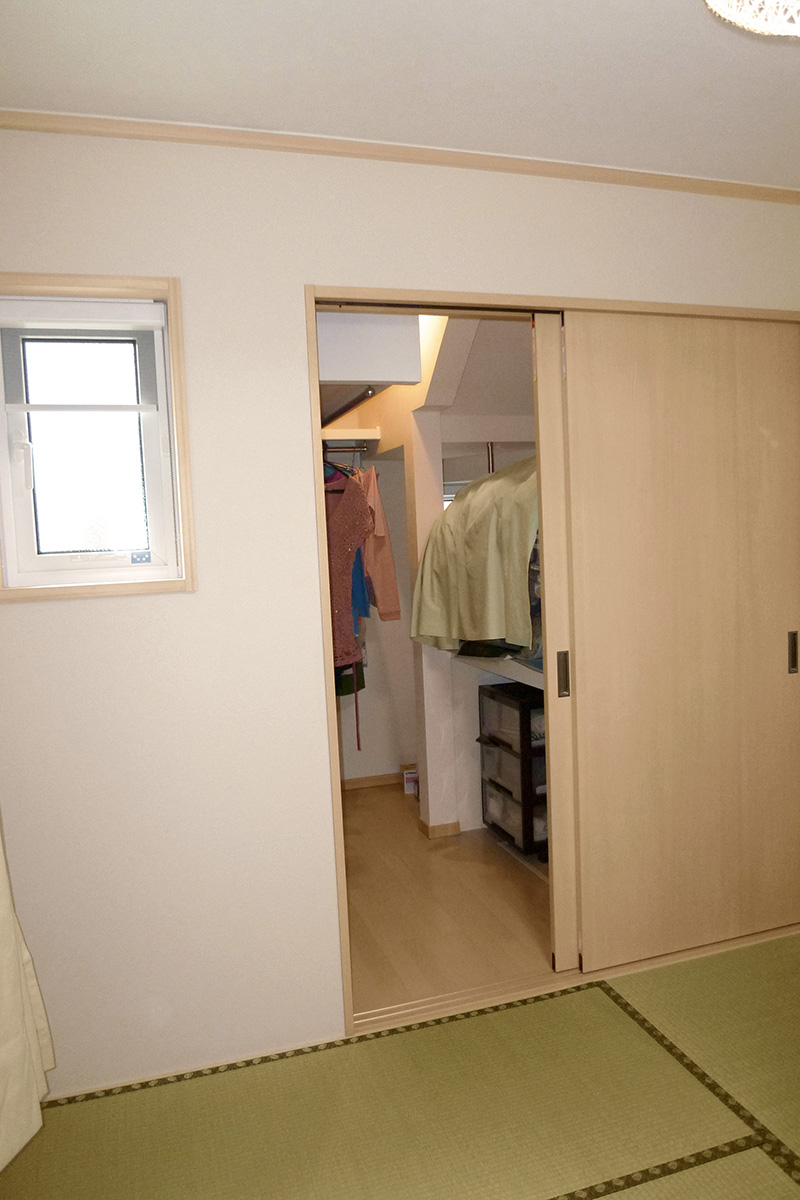 - 和室の引き戸はふすま紙を貼り、より和室らしさを感じる空間に