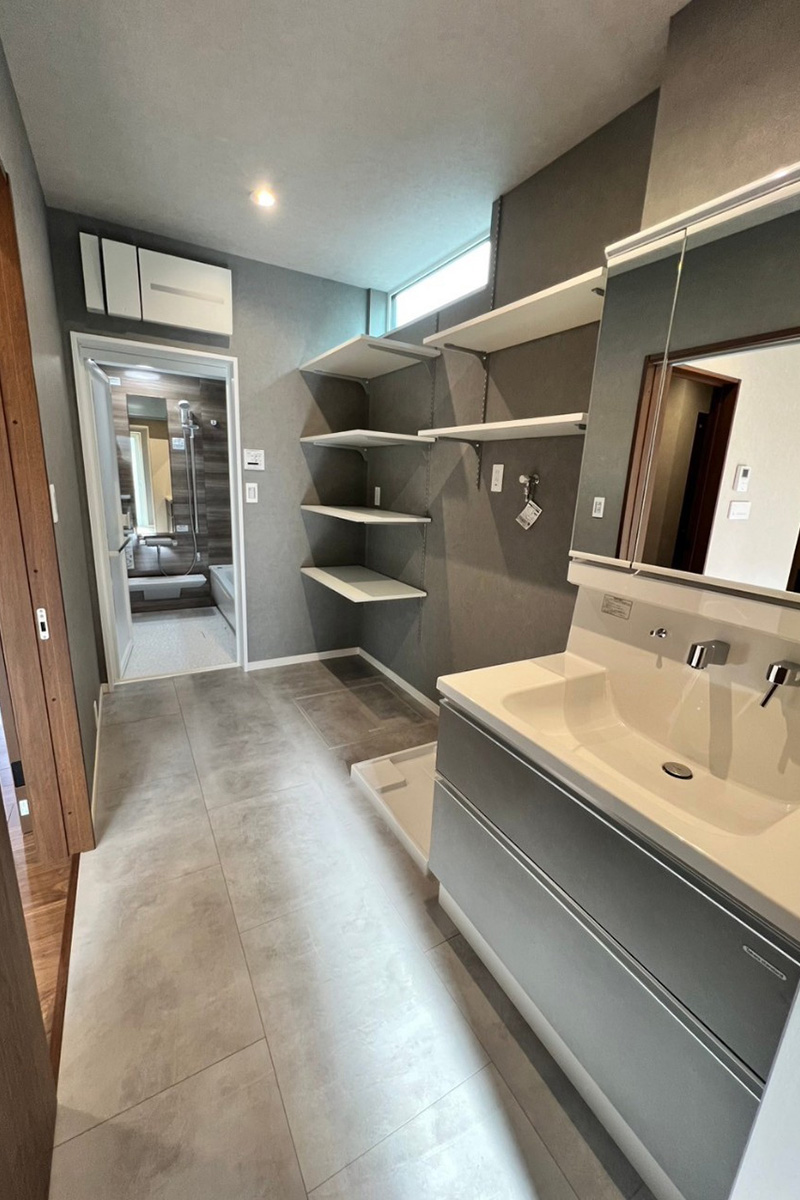 - 使い勝手の良い洗面・脱衣室。収納スペースが豊富で毎日の家事も楽々