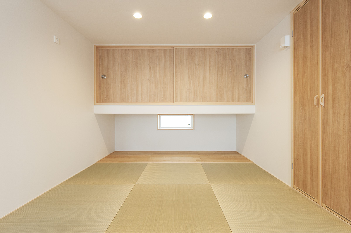 - 和室の前は本棚を置ける広いホールに。和室で家族一緒に読書を楽しめます。