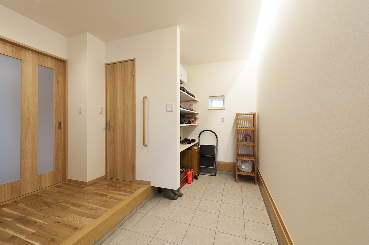 - 自転車を置いても空間に余裕を感じる広い土間玄関