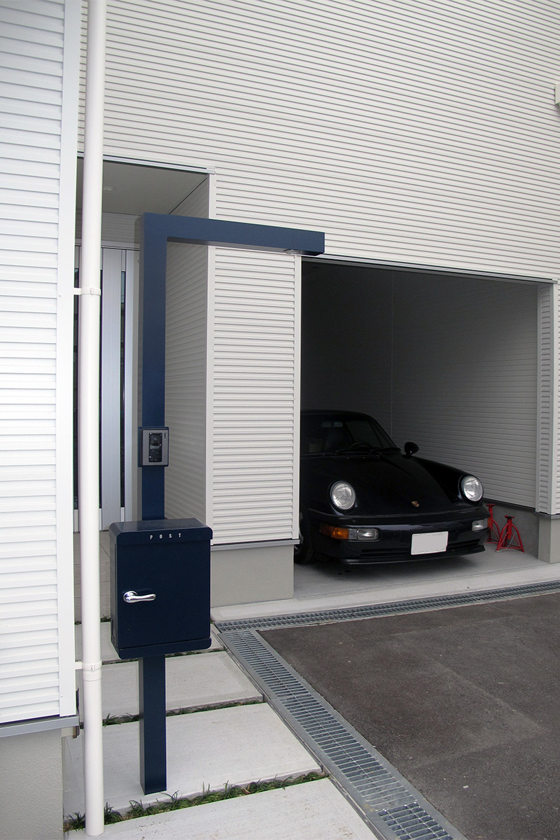 - 愛車のためのインナーガレージ。ロフトも設置可能な充分な高さと広さの作業スペースも確保。