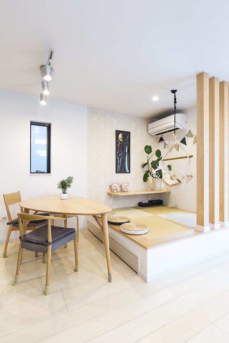 - 小上がりの畳スペースはダイニングと繋げてお子様のダイニングチェアとしても活躍します。