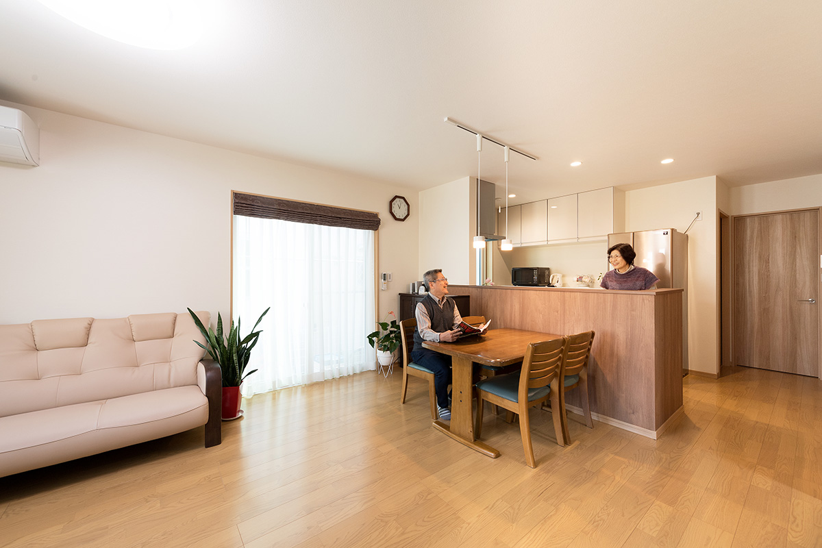 1. 上下移動がなく、生活動線がスムーズな平屋住宅。ご家族との距離が近くコミュニケーションが生まれやすくなります。