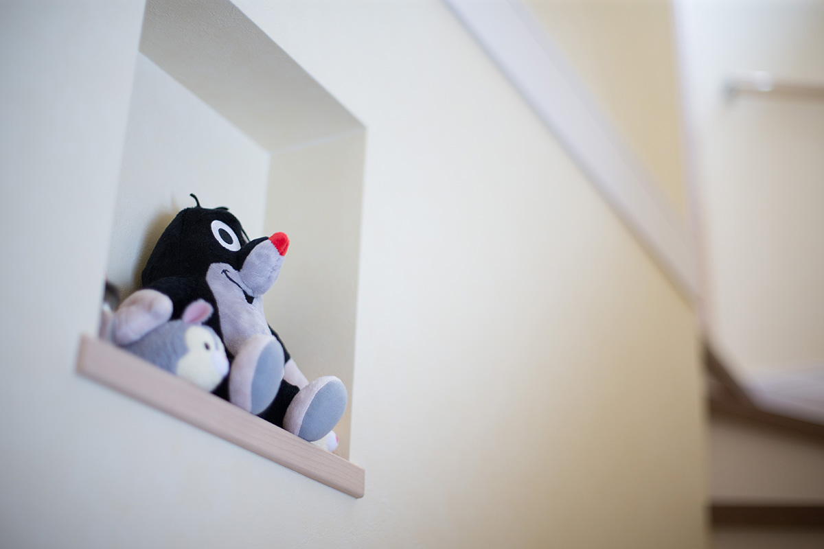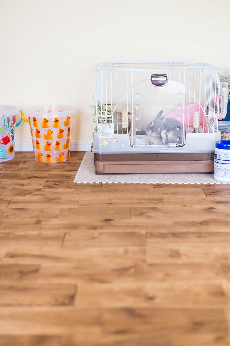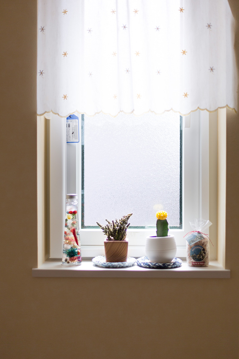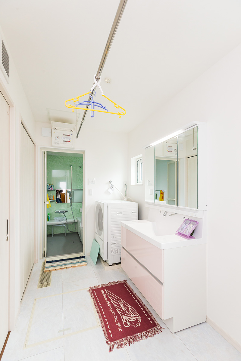 - ピンク色のキッチン、トイレやミッフィーの壁紙など、ご夫婦の好きなものが詰まった優しい印象の内装