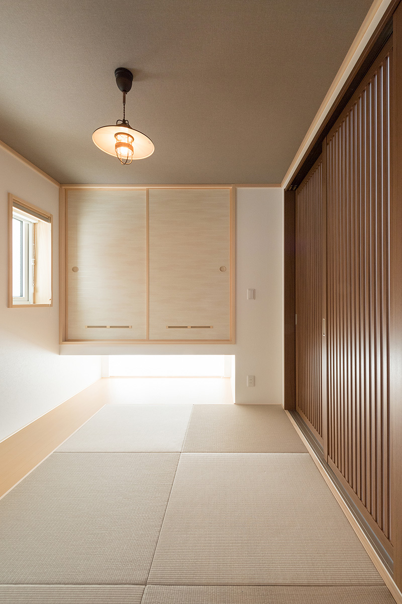 - ハイドアを採用したリビング一角の和室。一体感を生みながらも空間を程よく仕切ります。