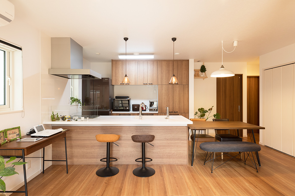 - 家事動線の効率をよくするキッチンと横並びのダイニング