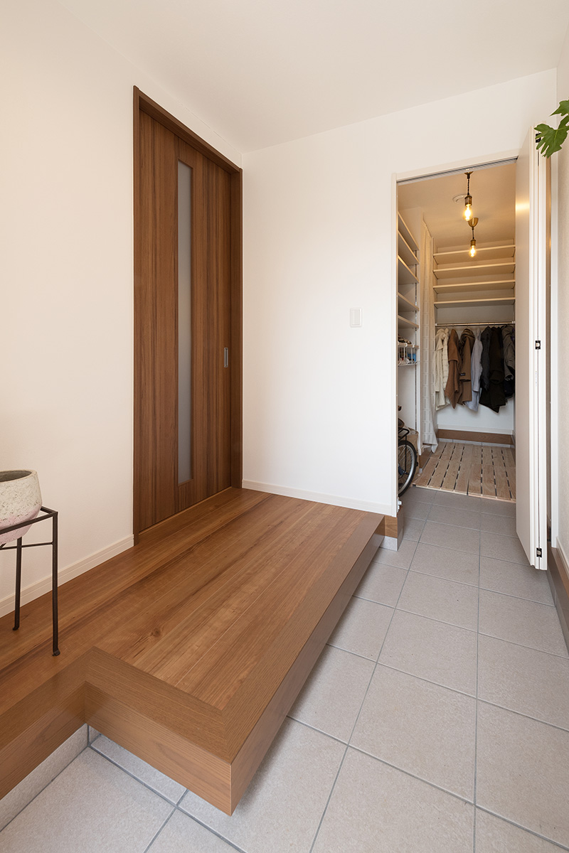- 上着や折り畳み自転車などをしっかり収納するシューズクローク。来客時もスッキリとした玄関に。