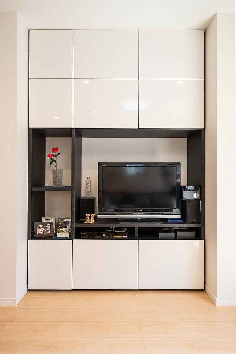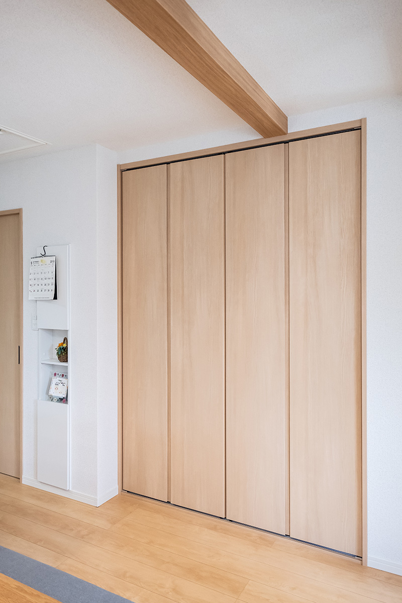 - 天井まであるリビングのハイドア収納でたっぷり収納できます。
