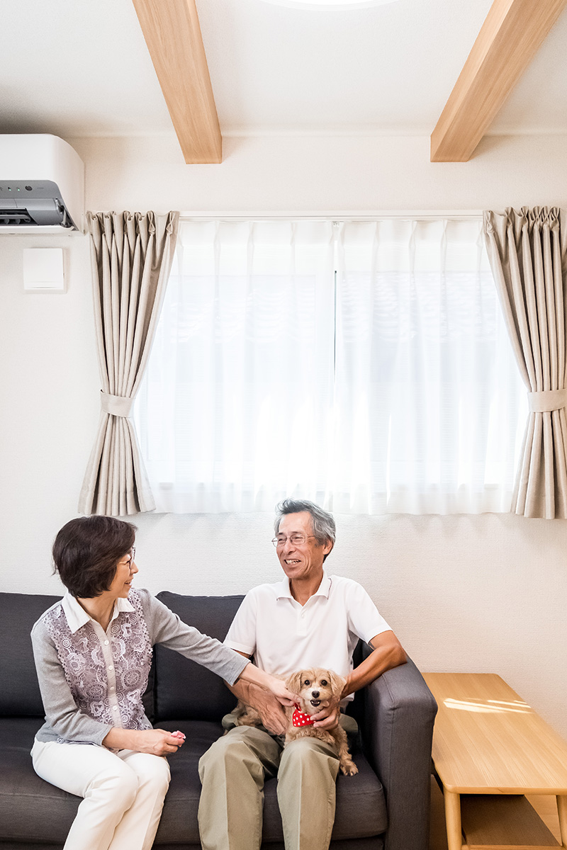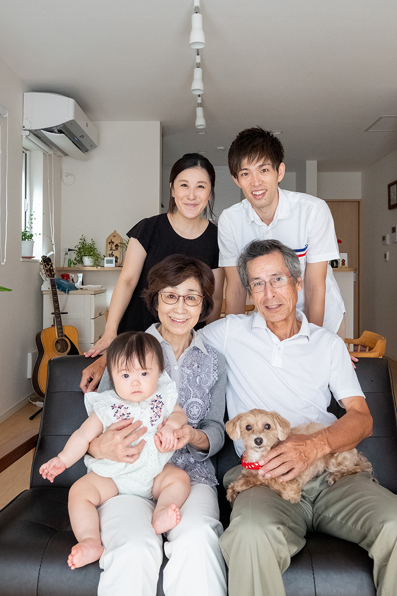 - 1階がご両親、2階が娘さんご一家の上下階で分かれた二世帯住宅