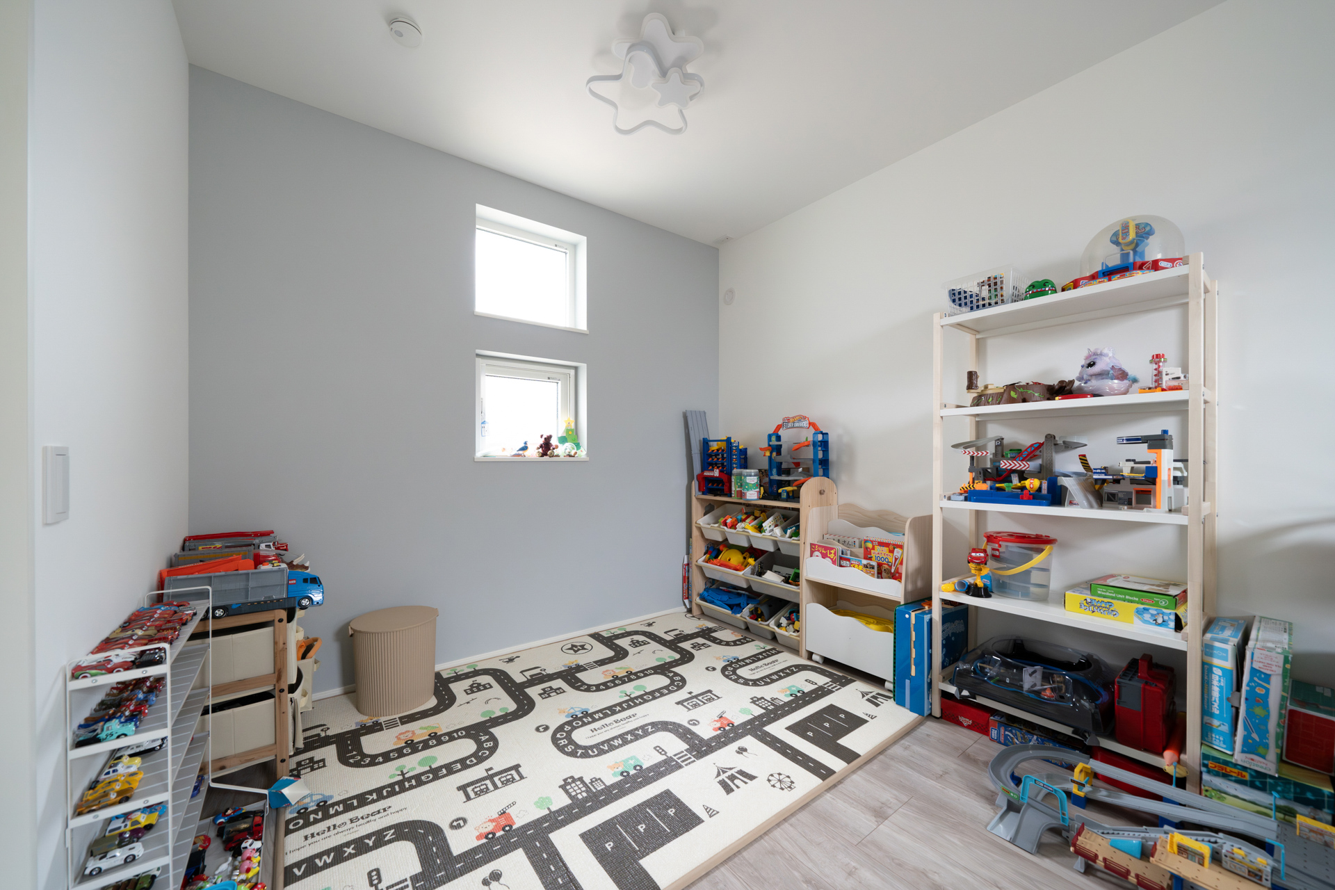 - 子どもが遊んだり、将来は勉強部屋として使ったりできるプレイルーム