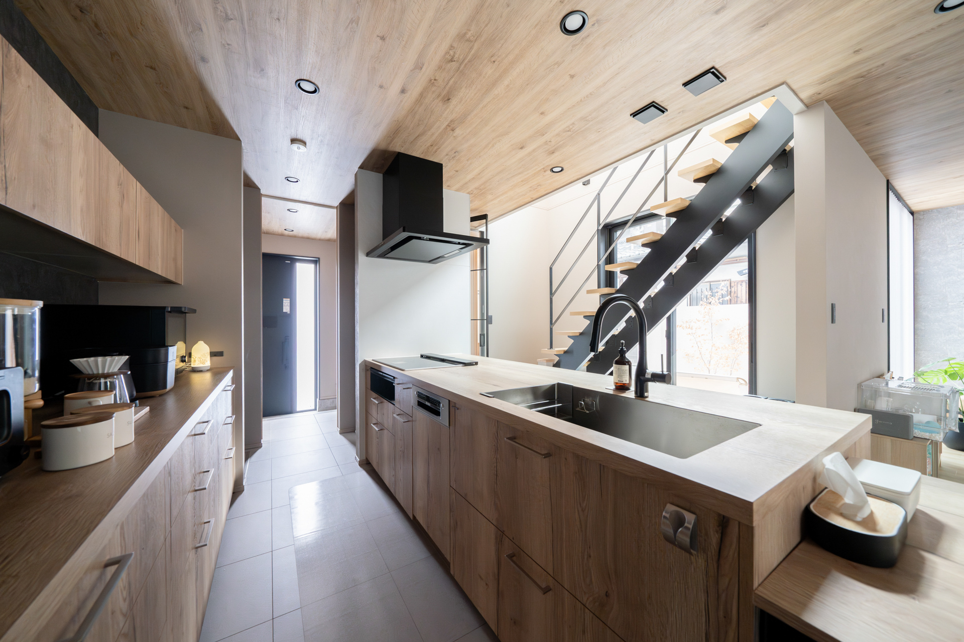 1. 木目調のデザインが目を惹くグラフテクトのキッチン