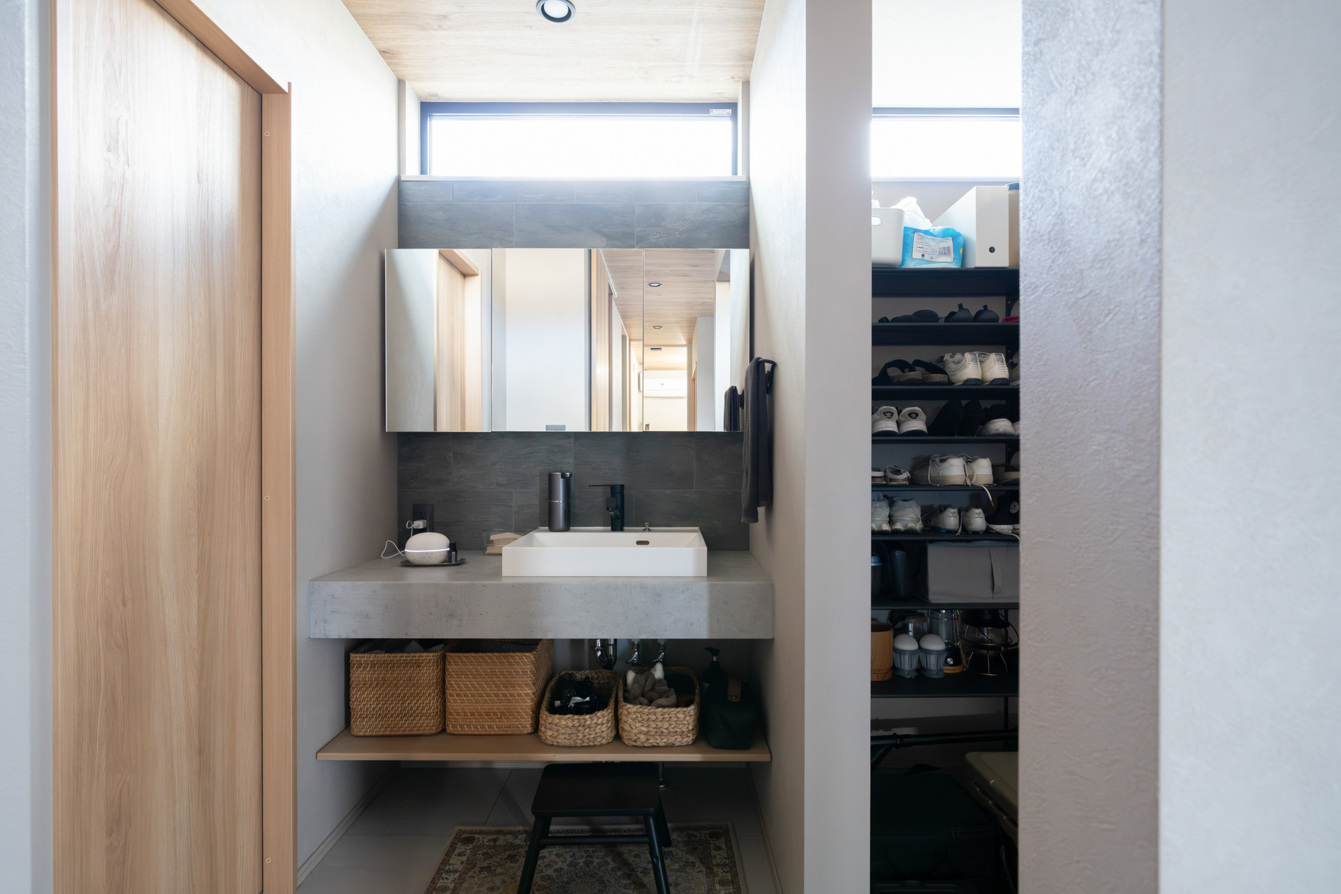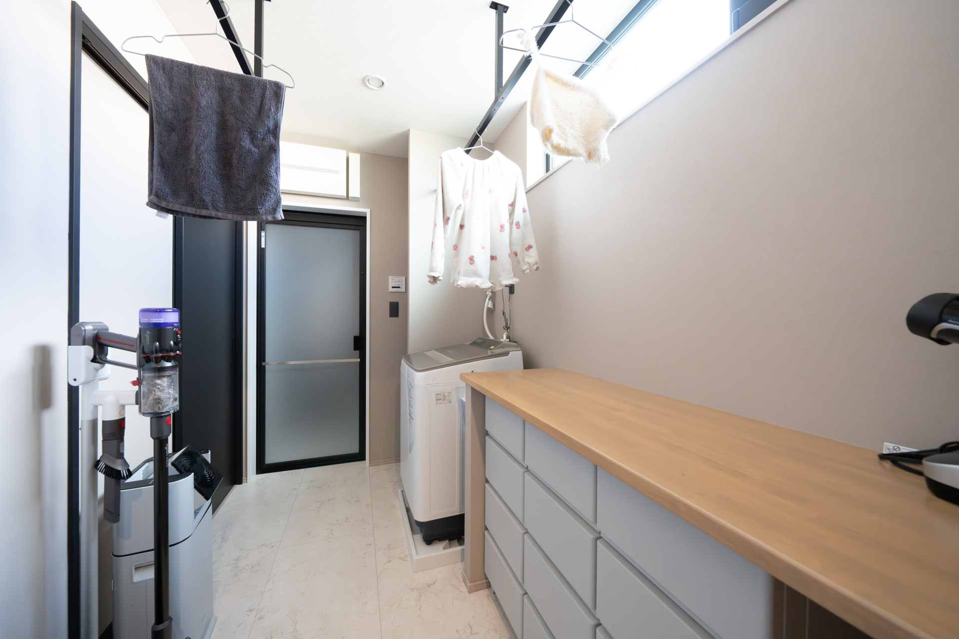 2. リビングを通らずに洗面所へ向かえたり、パントリーへ直接荷物を置けるなど便利な家事動線