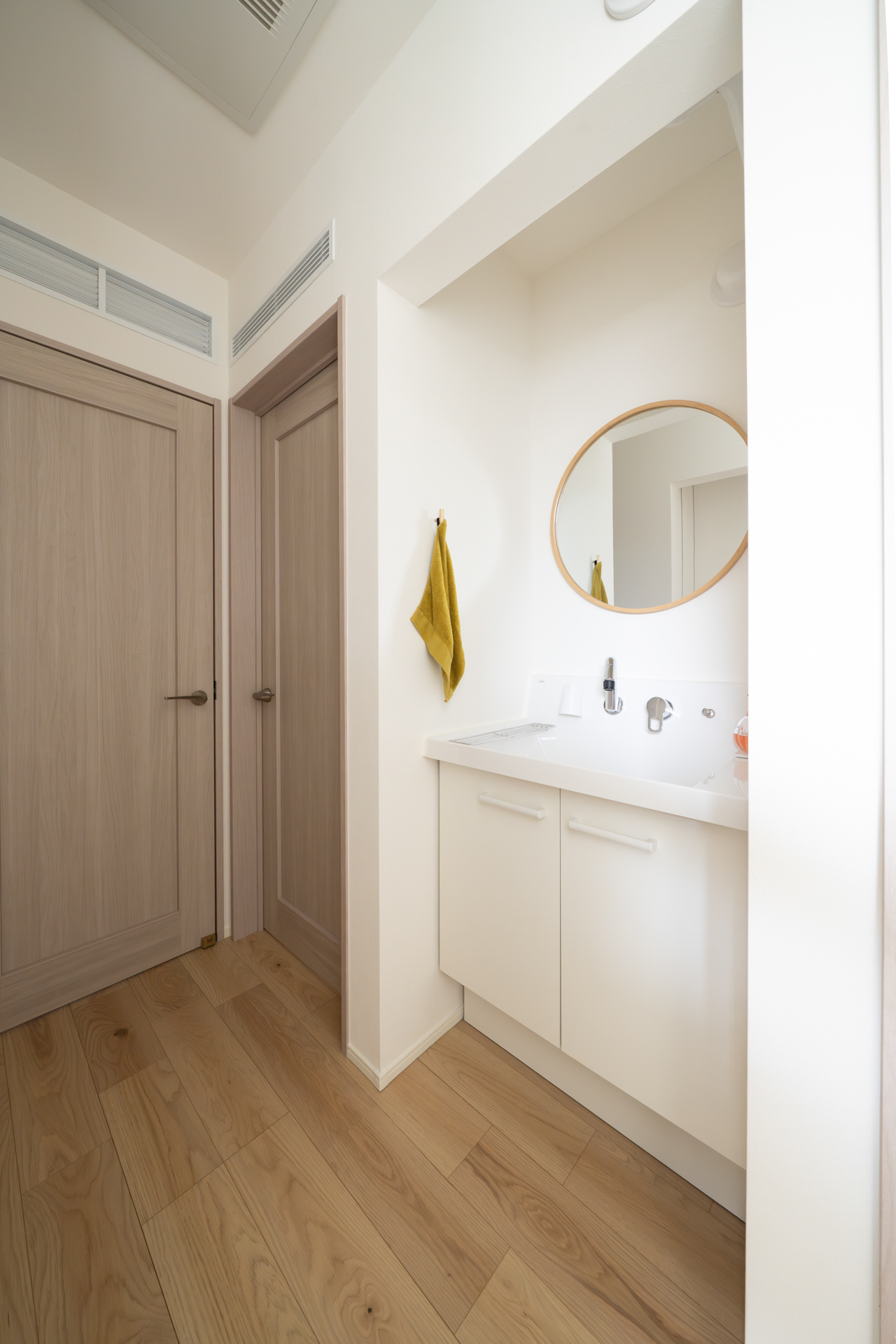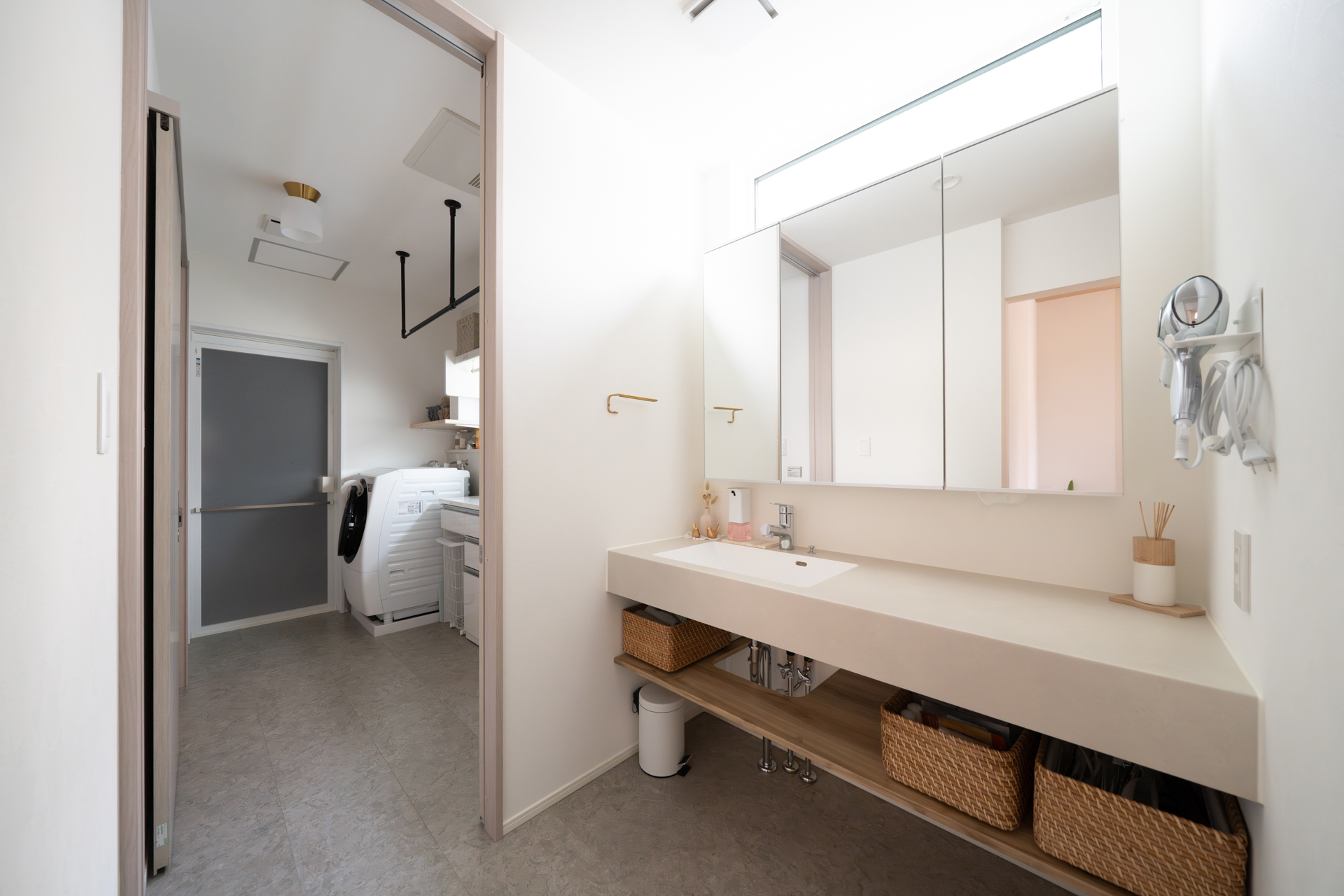 - 夫婦2人が並んで使えるようにした造作の洗面台