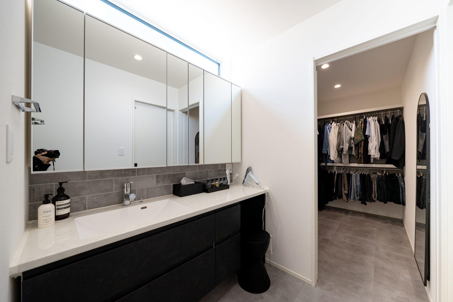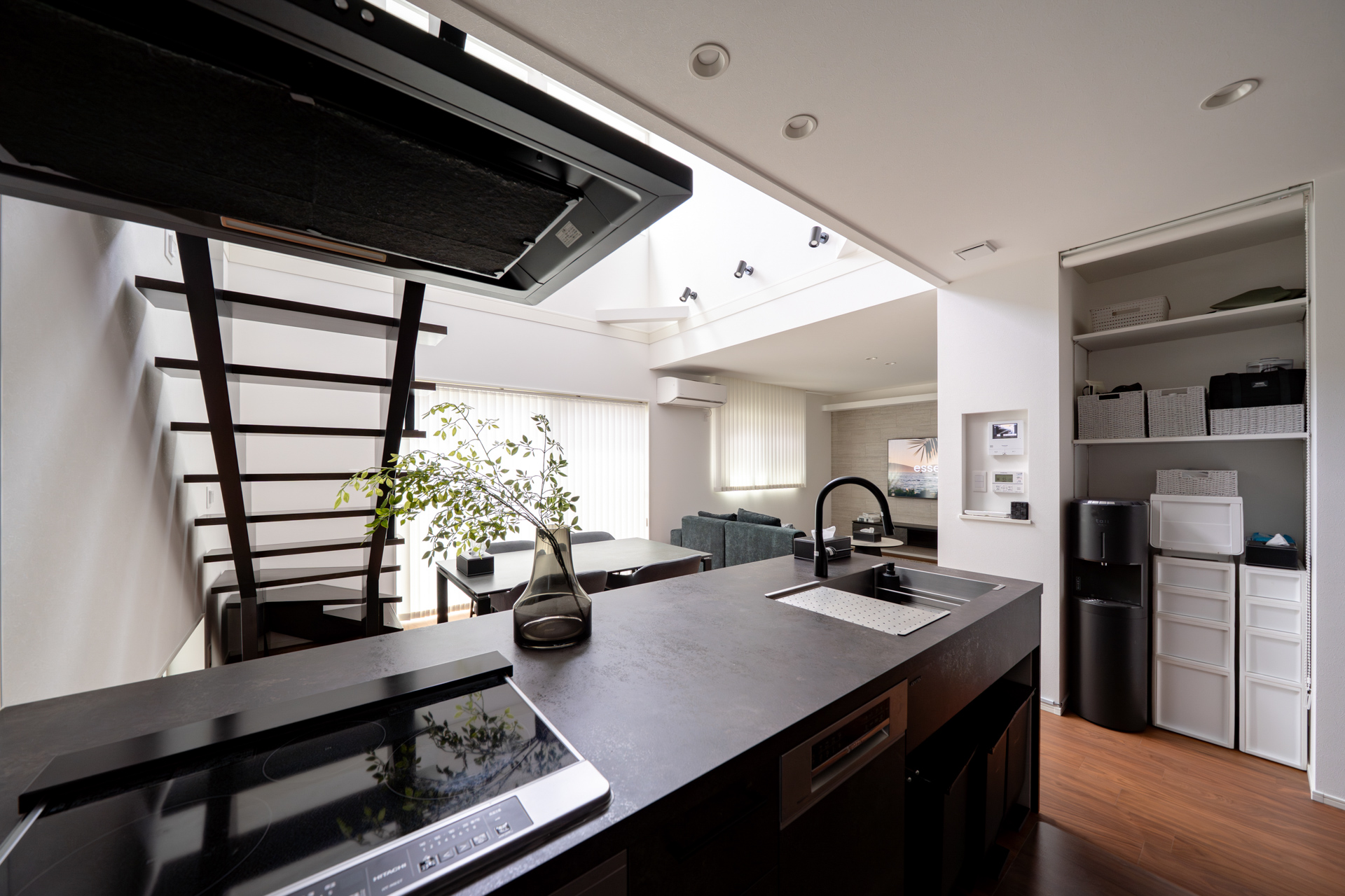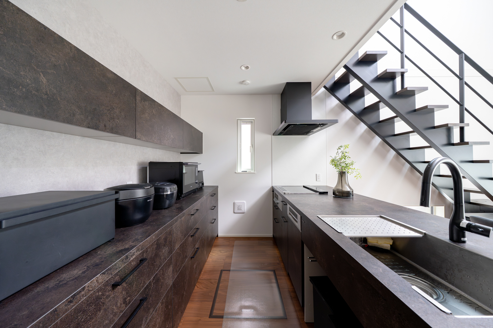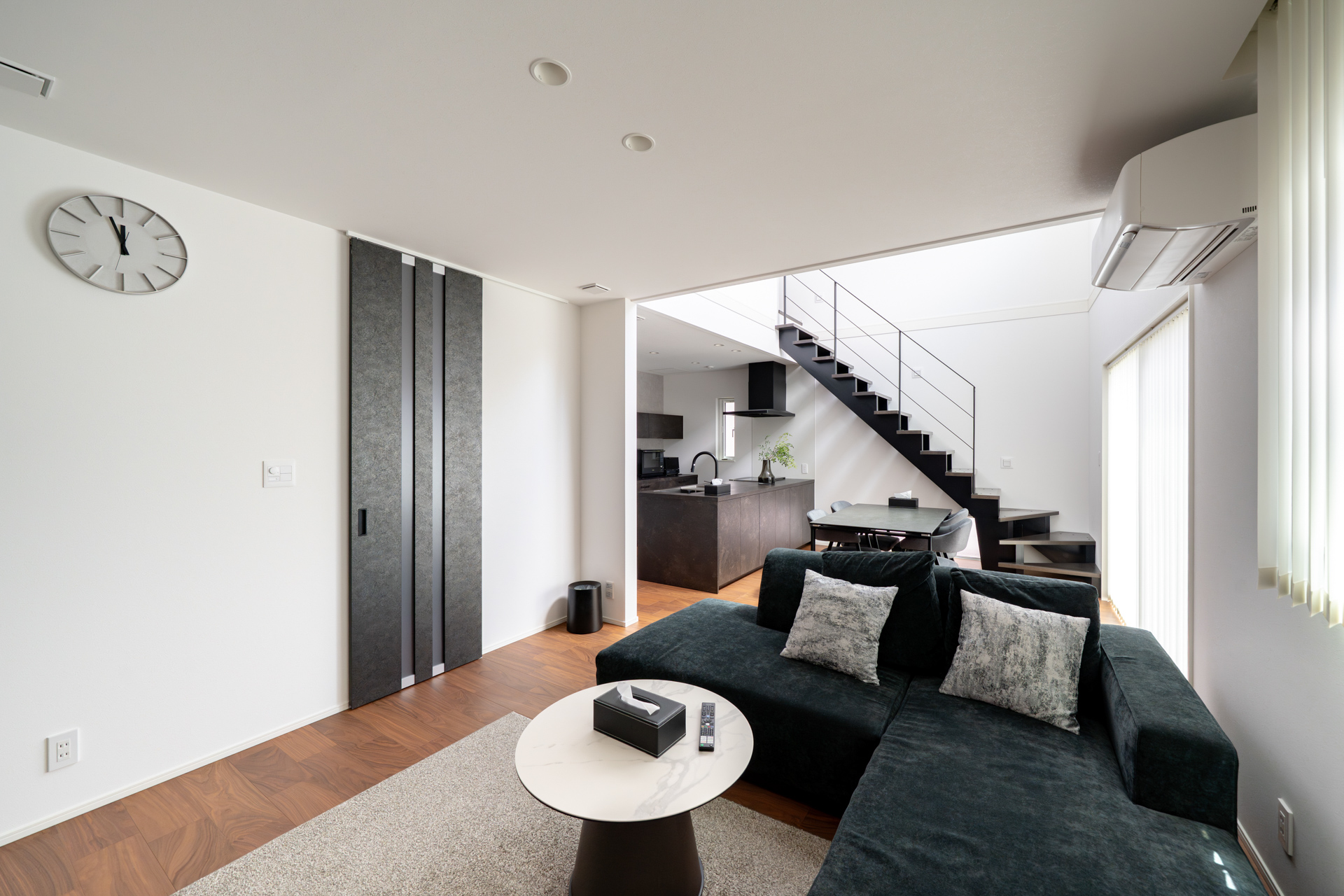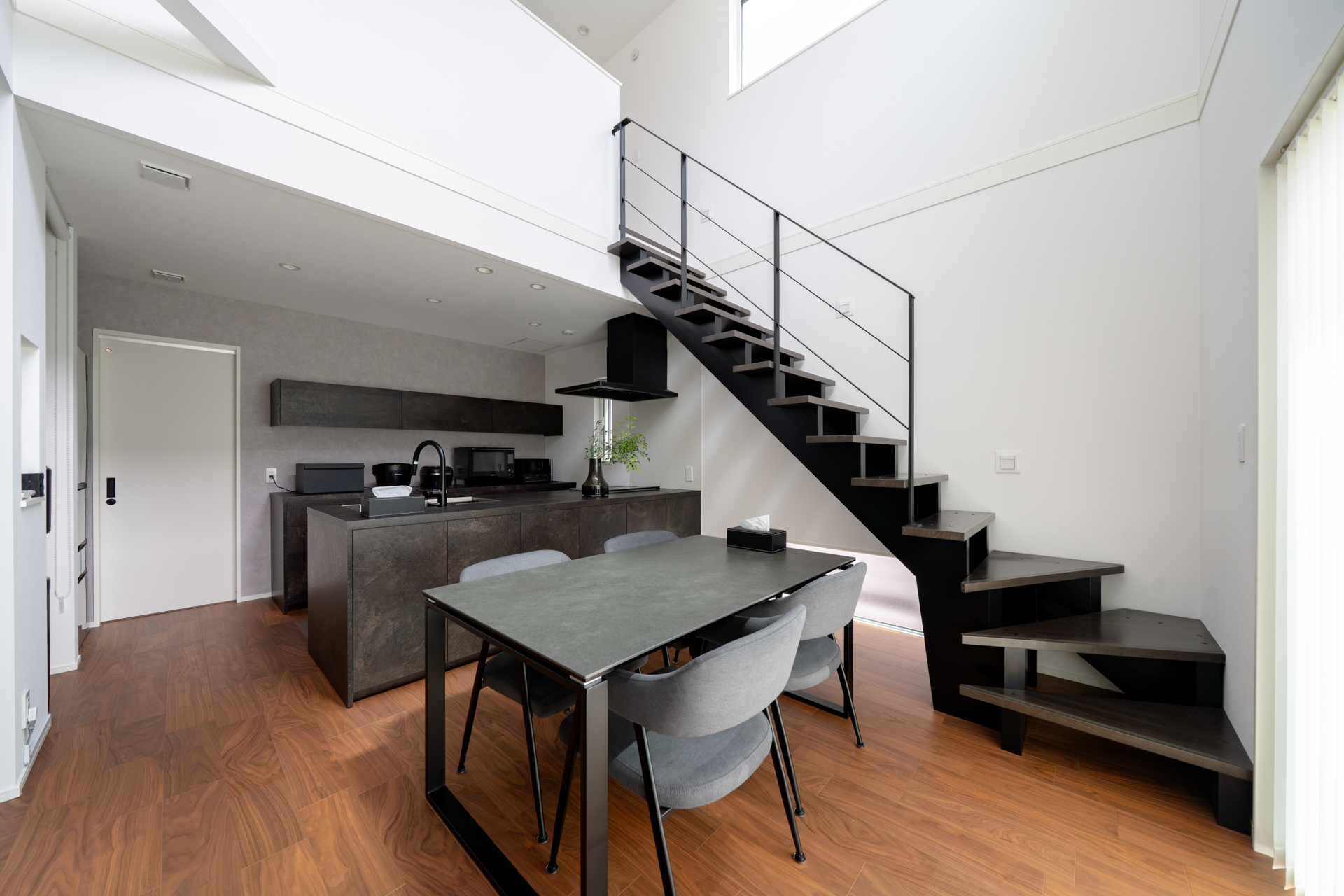 TOP > 建築事例 > 施工事例 > アイアン階段が映える、グレー×白×黒の洗練空間の住まい | 兵庫県加古郡