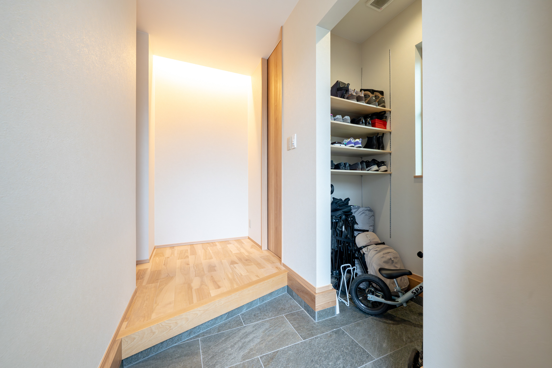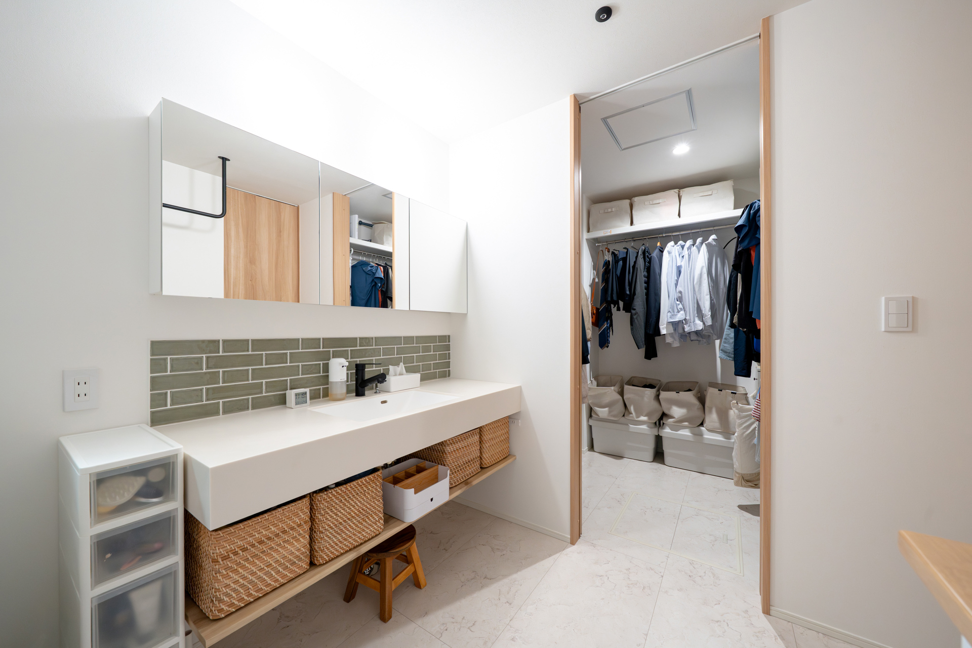 - 洗面-室内干し-WICを一直線に配置し“洗う→干す→しまう”を1階完結