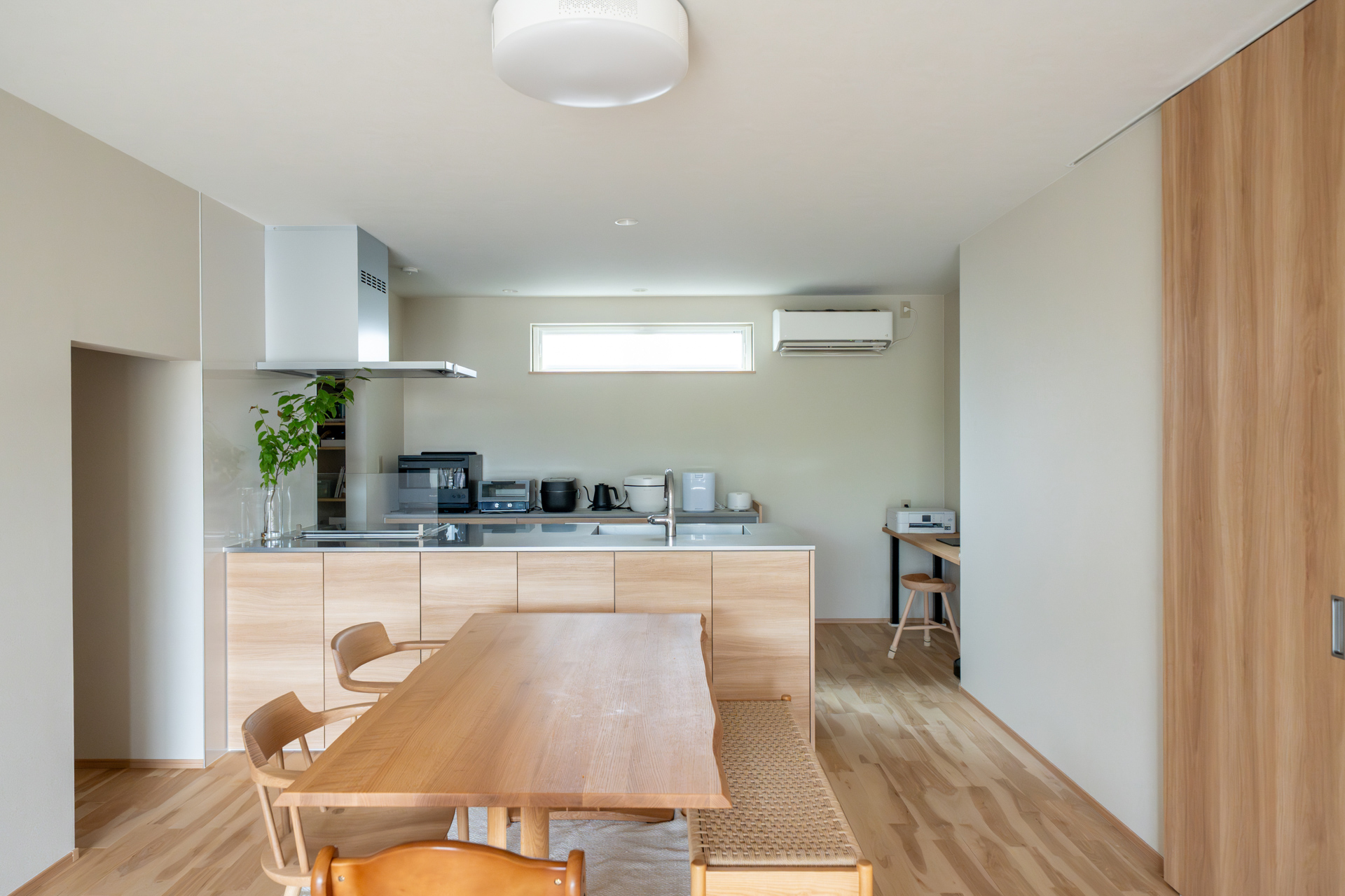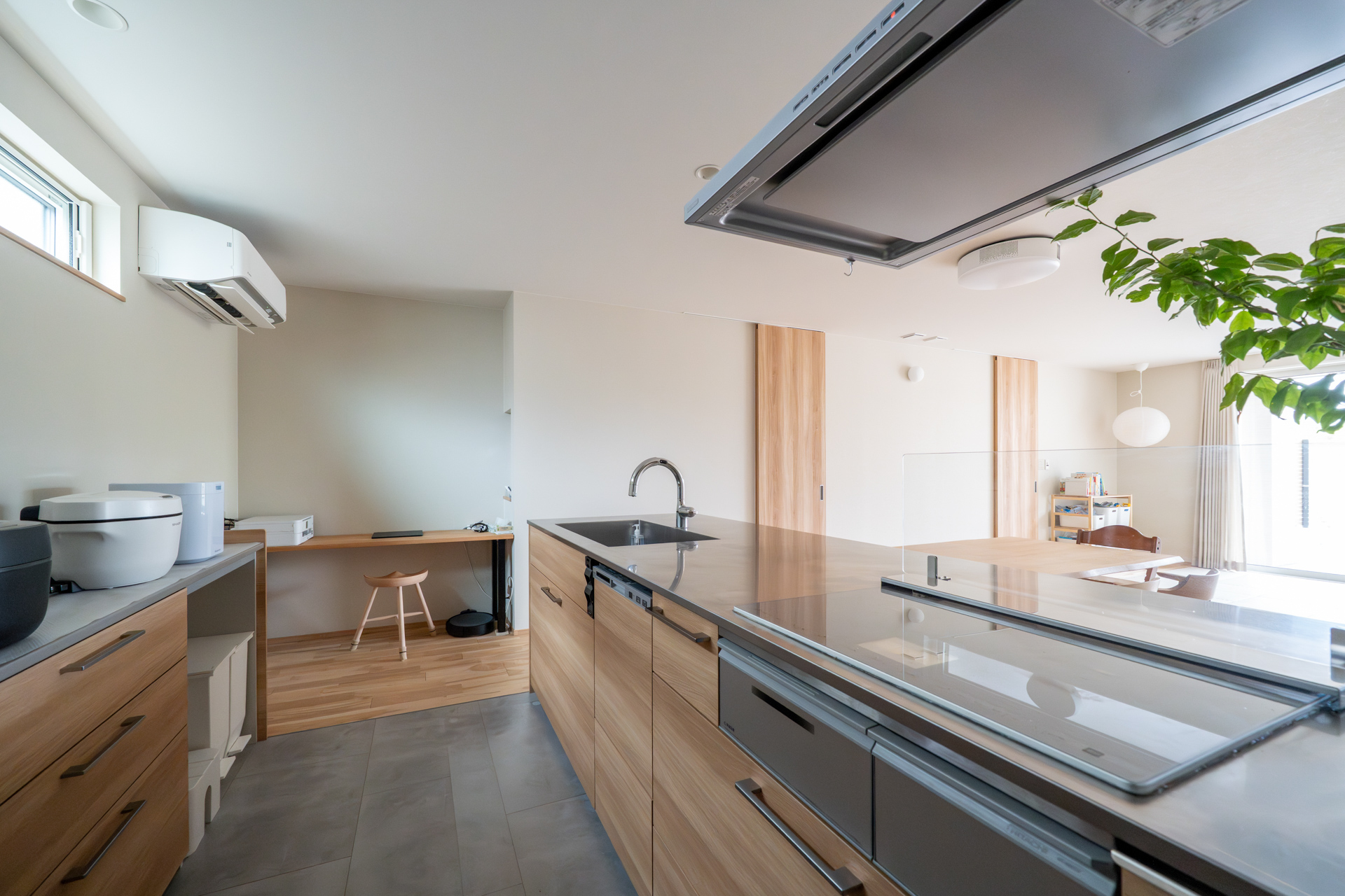 - ステンレス一体シンクのアイランドキッチンで美観と清掃性を両立