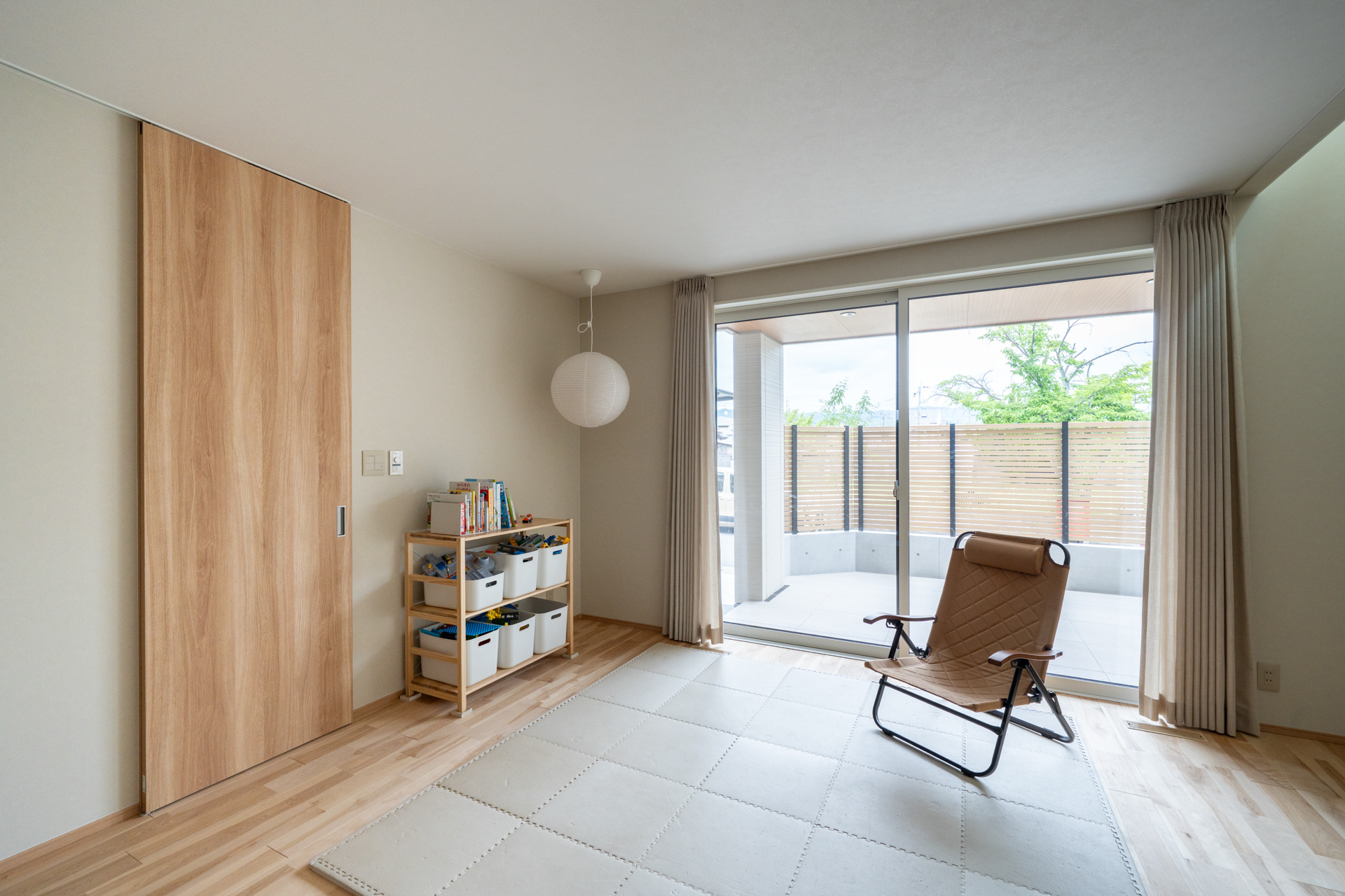 - 大開口+フラットテラスで室内外がシームレスにつながる