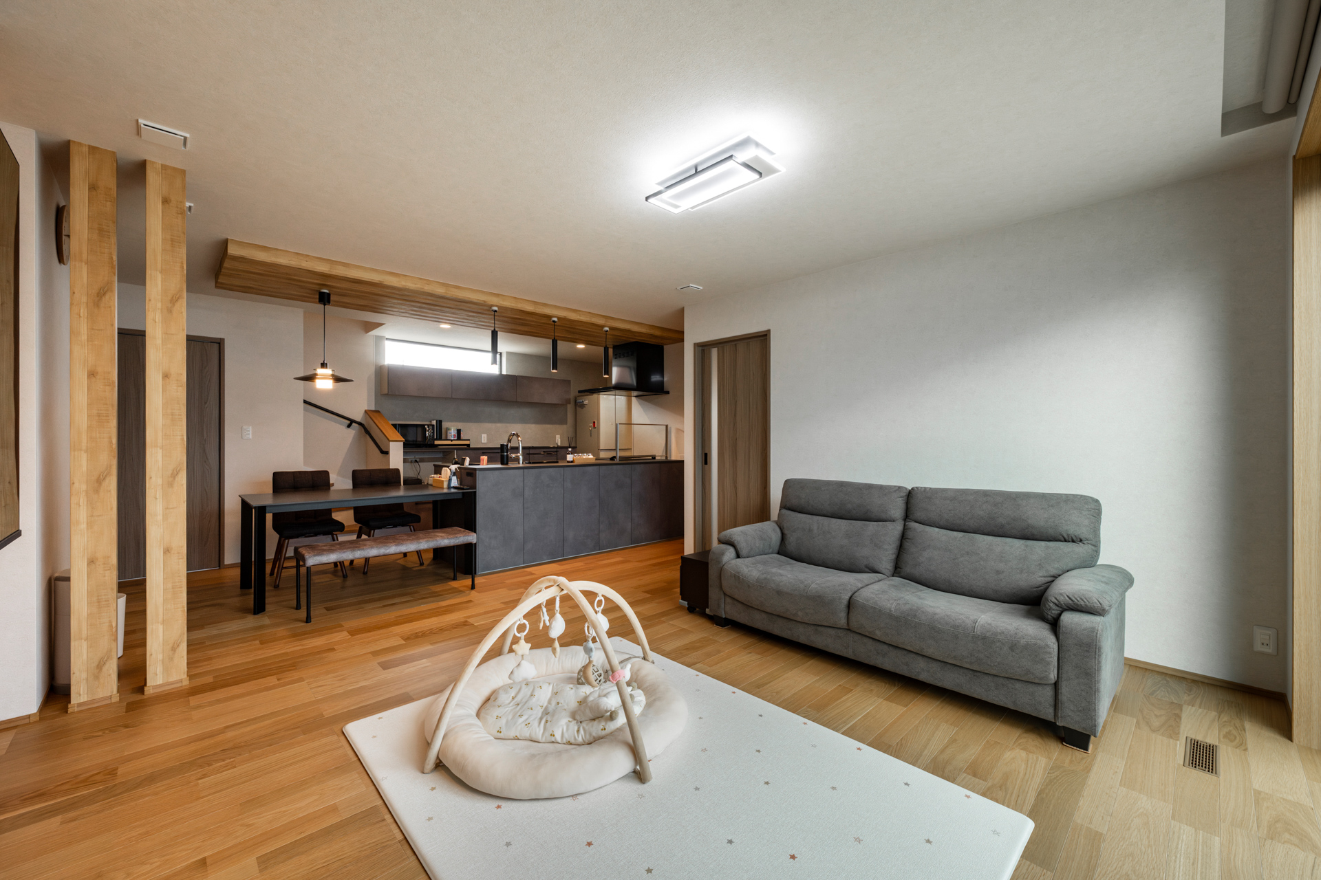 - 玄関→パントリー→キッチンの一直線動線で買い物ラクラク