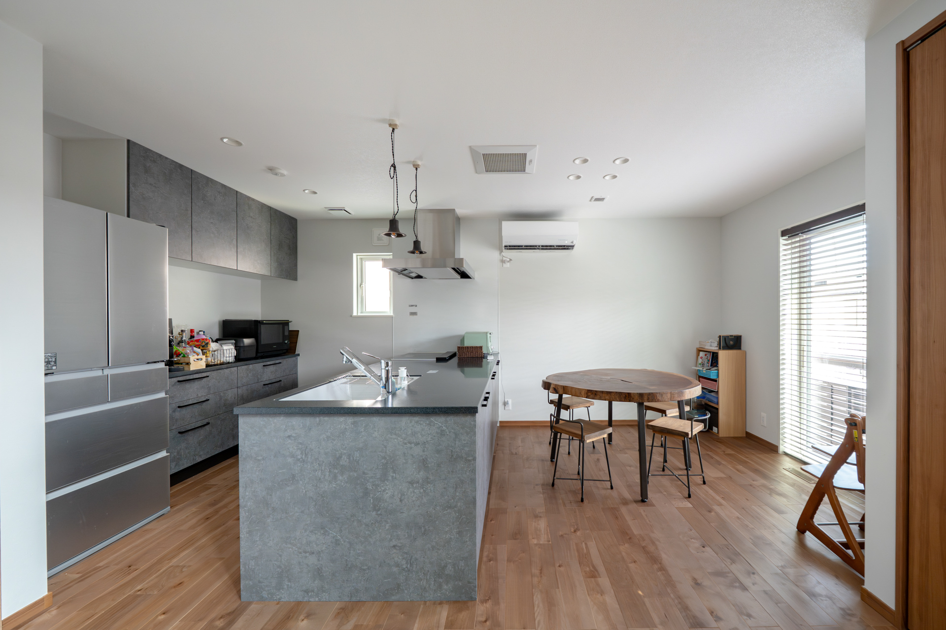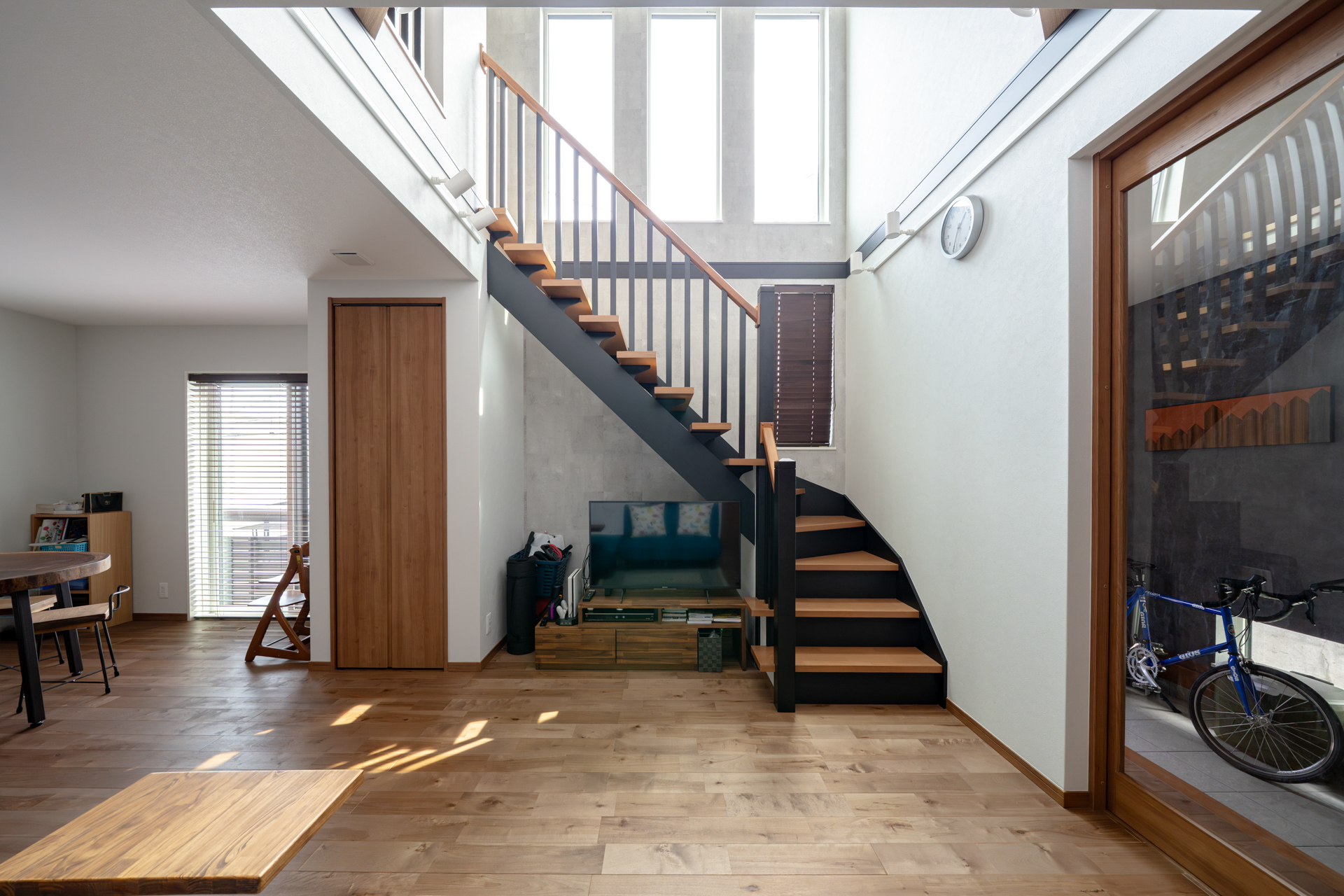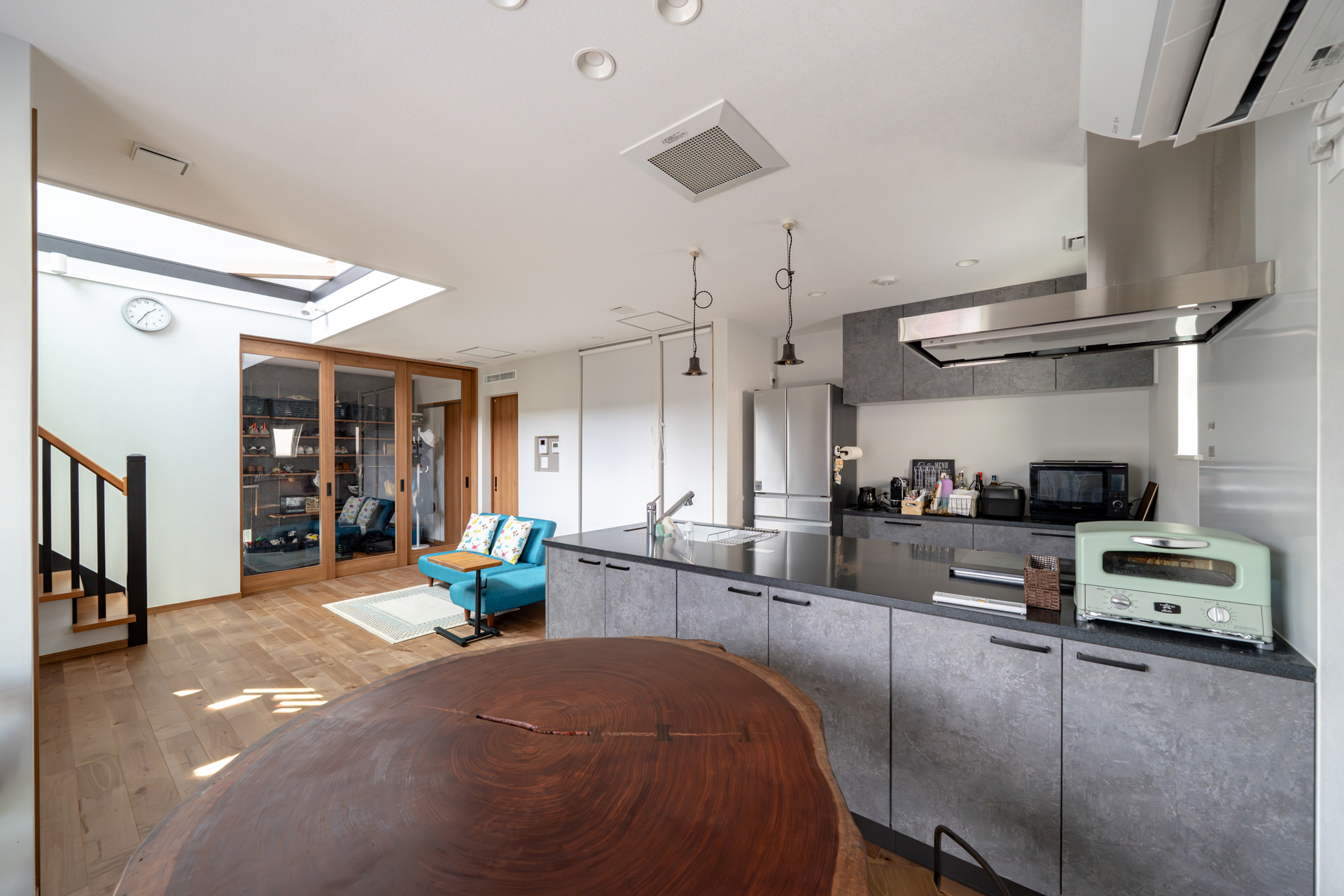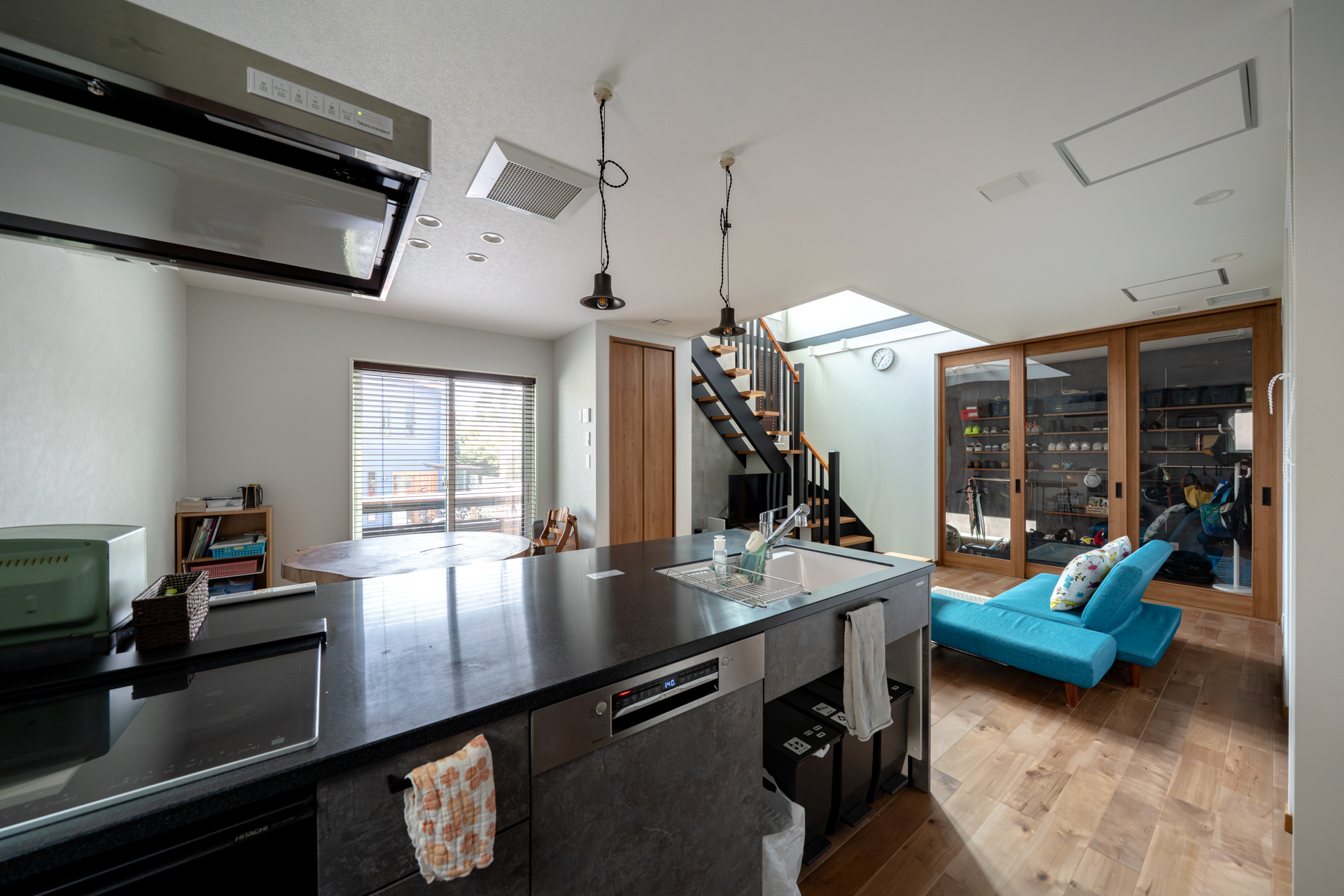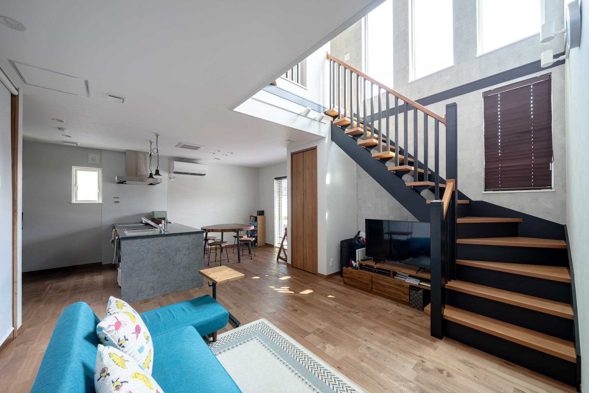 - 仕切りのない一つながりの空間。家族が自然と集まる吹き抜けのLDK