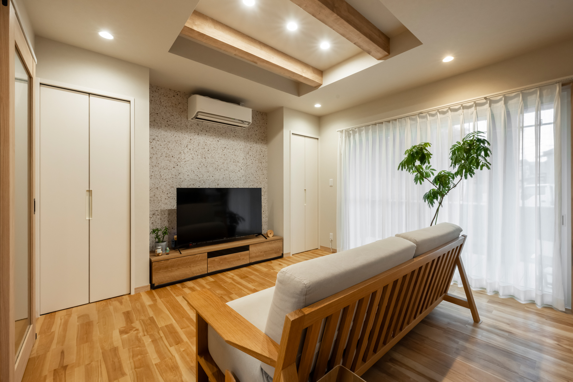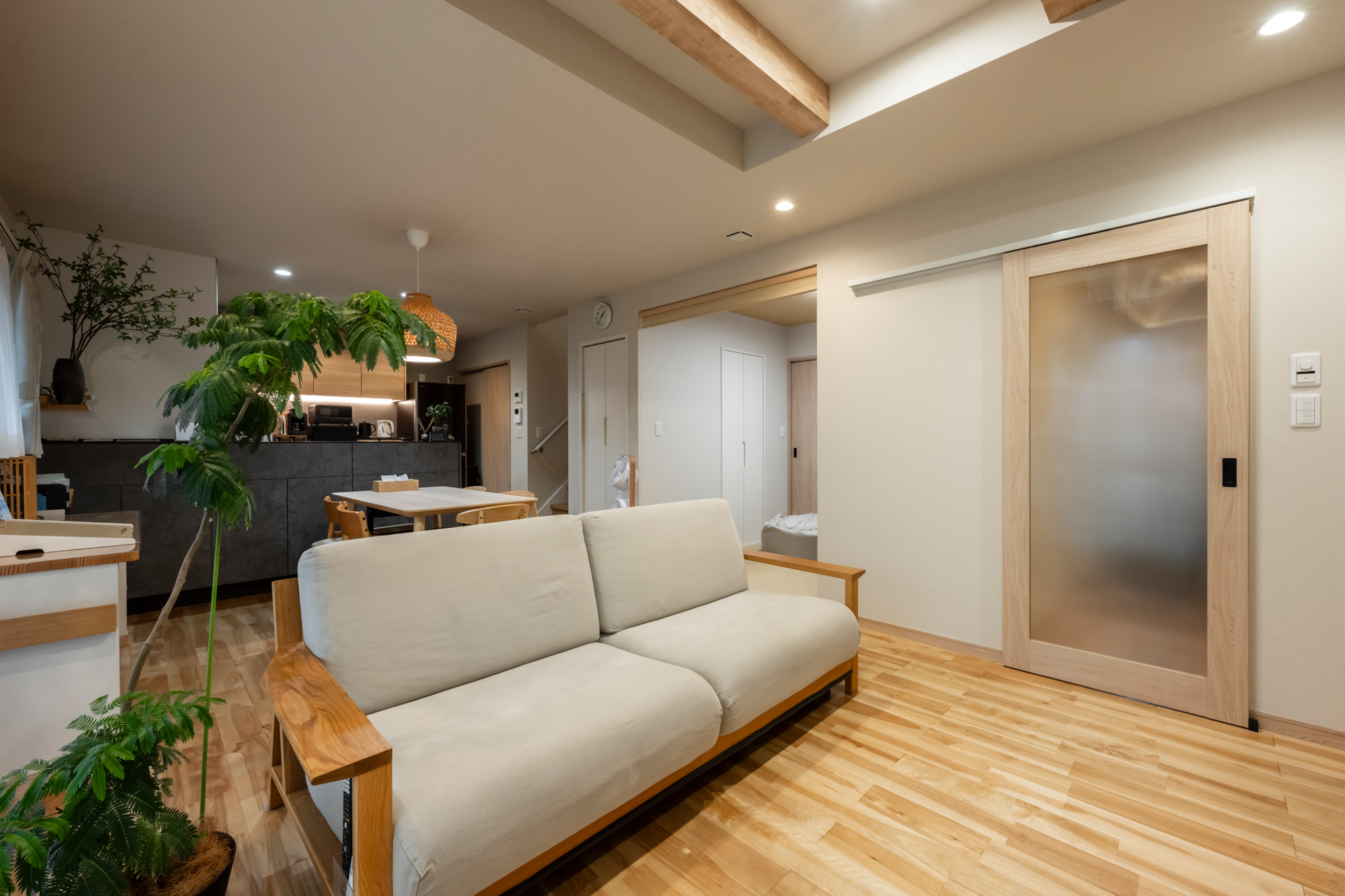 1. 家族が自然と集まるリビングと、くつろぎの和室を設計