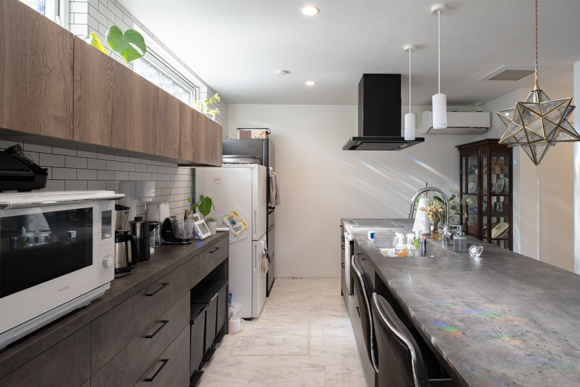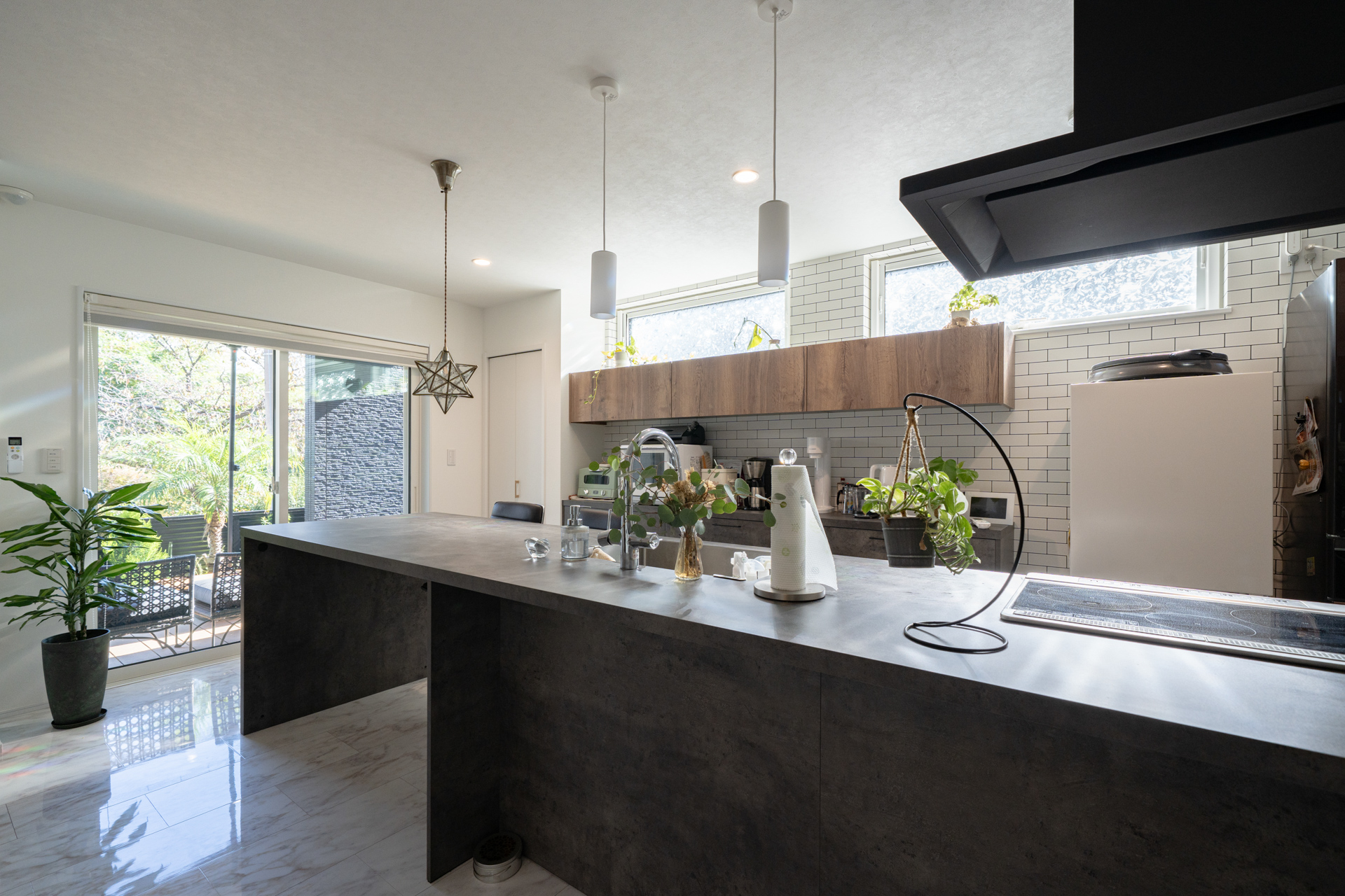 3. ダイニング一体型キッチン天板で“食べる→置く→洗う”が一直線