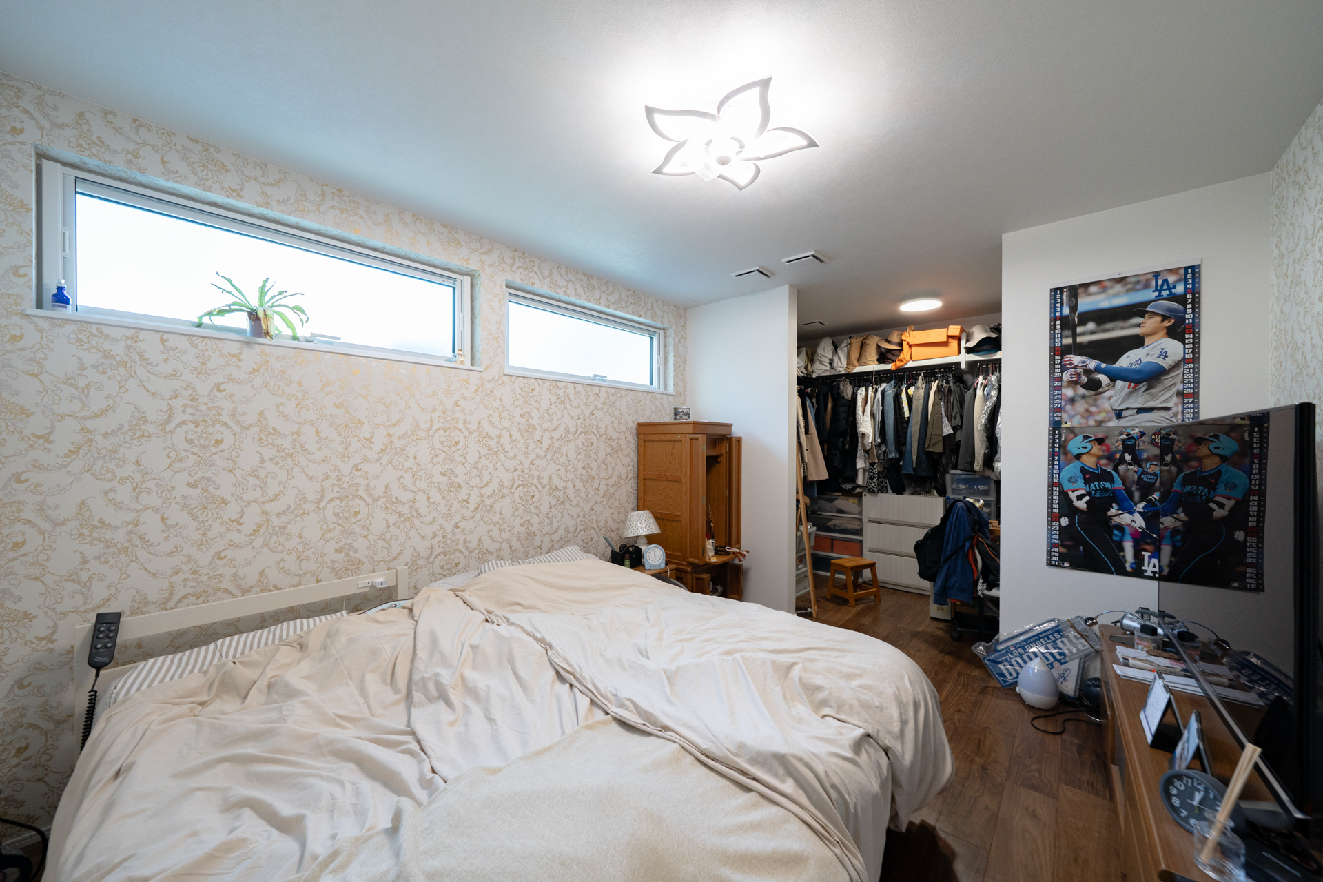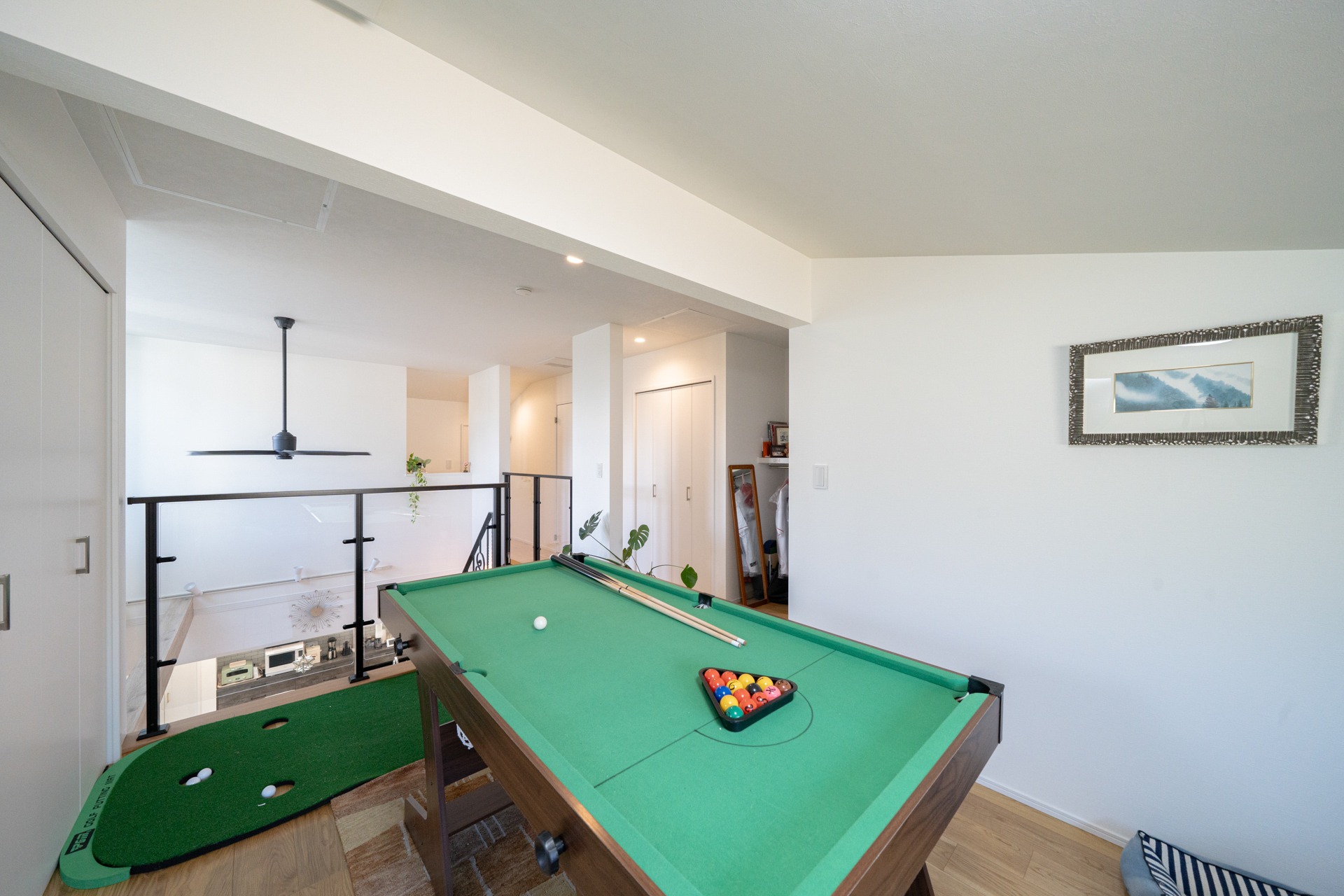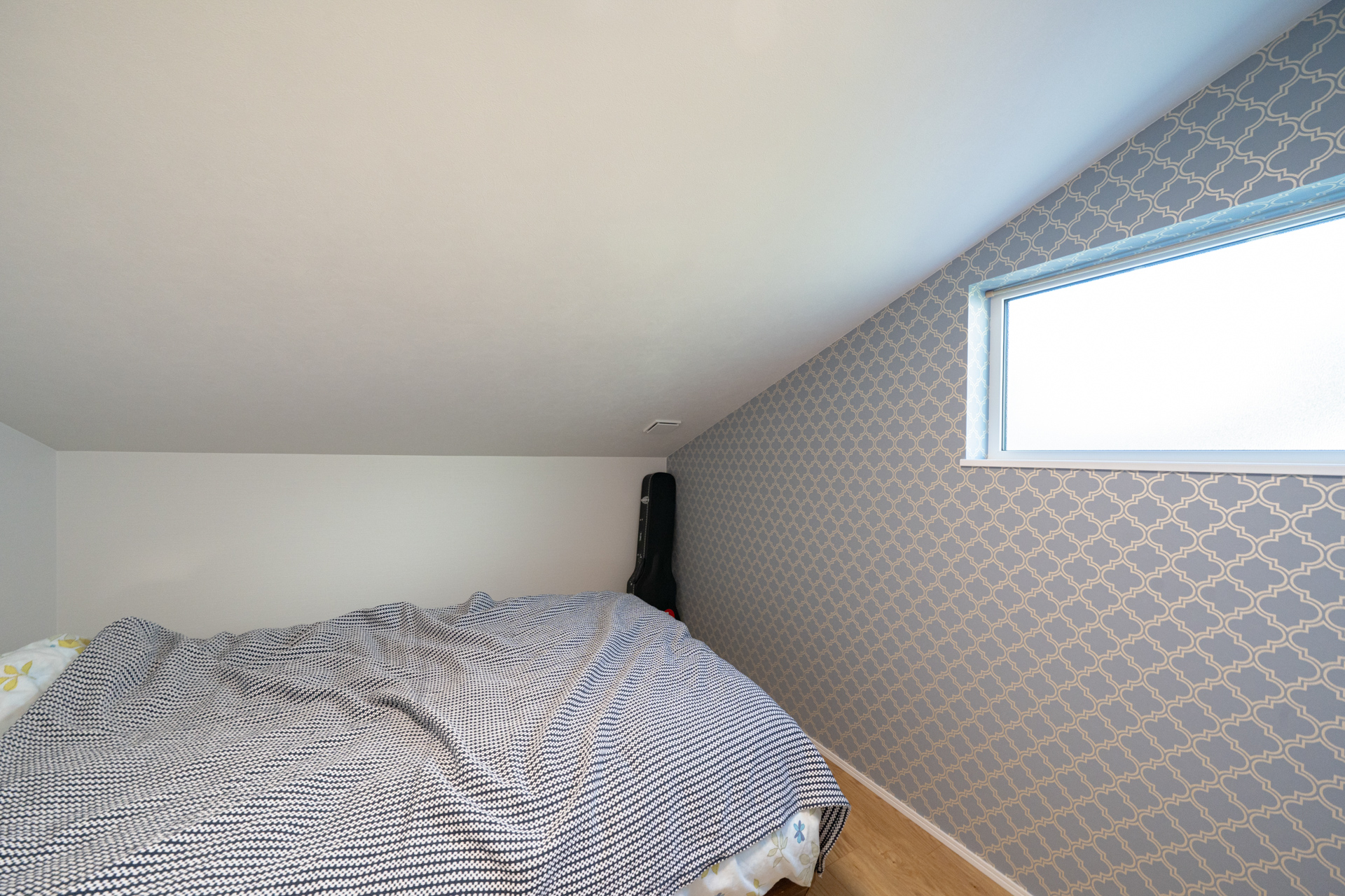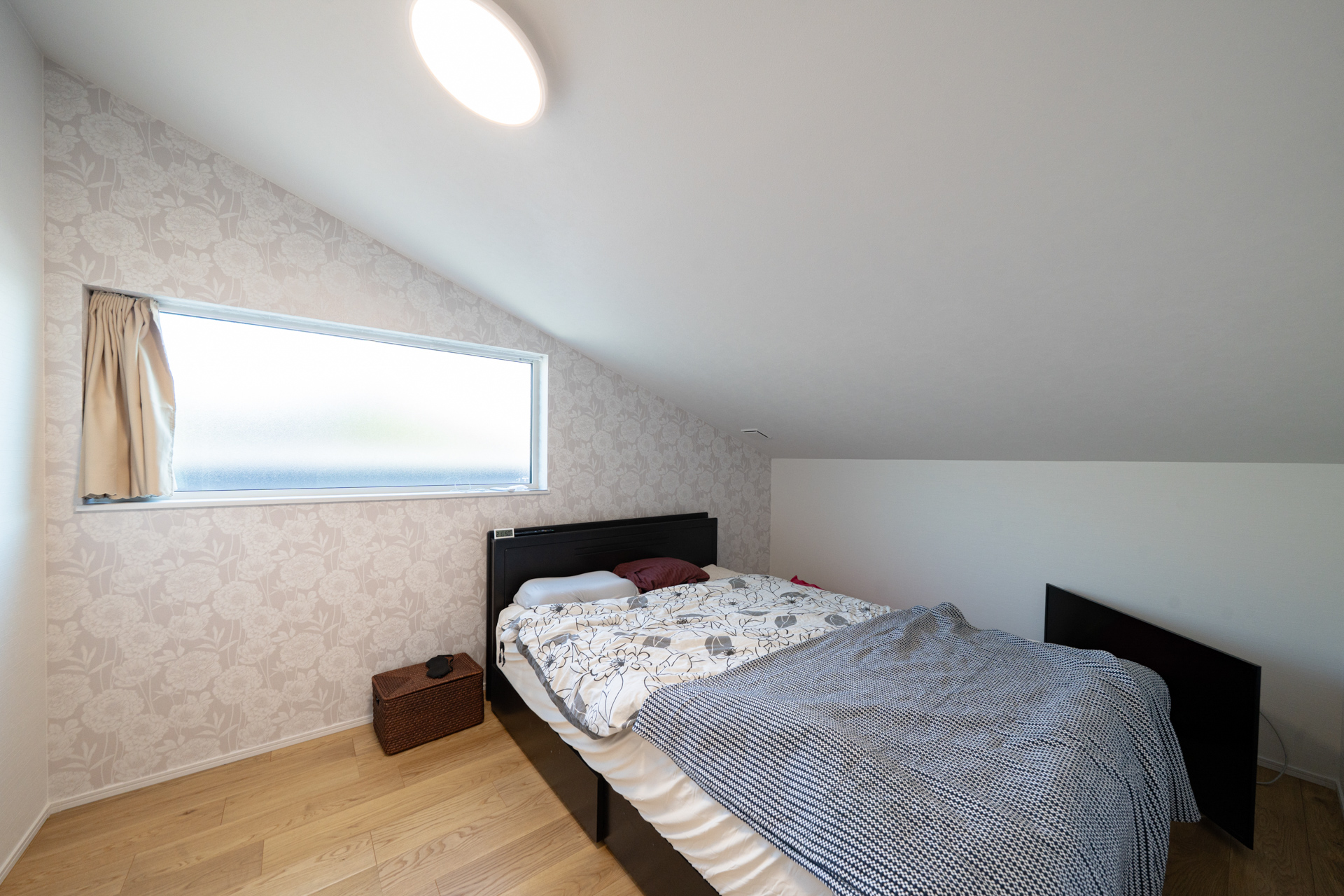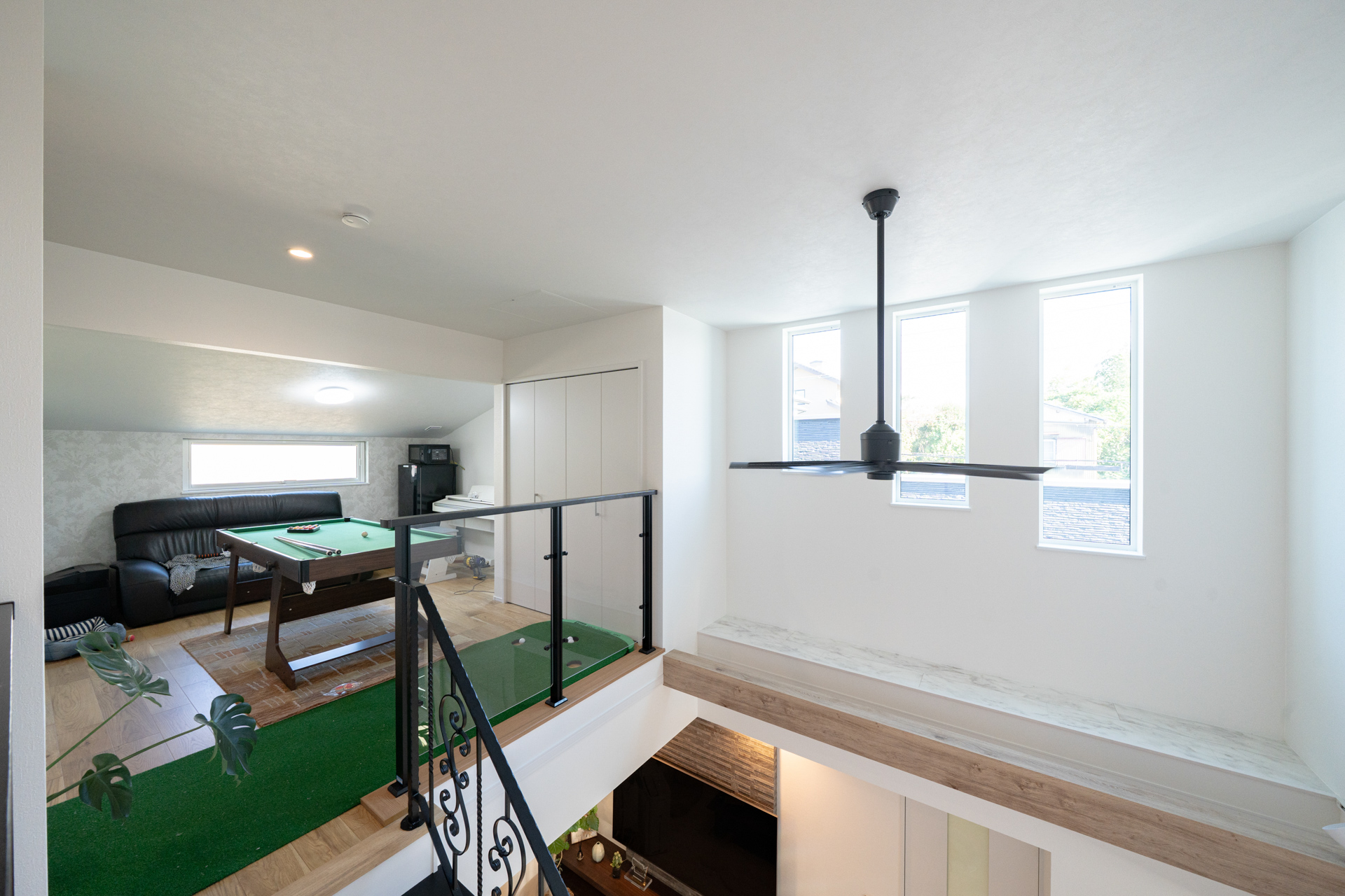 2. 吹き抜け+ハイサイドライト+天窓でやわらかな採光、過度な開口は抑えて防犯も配慮