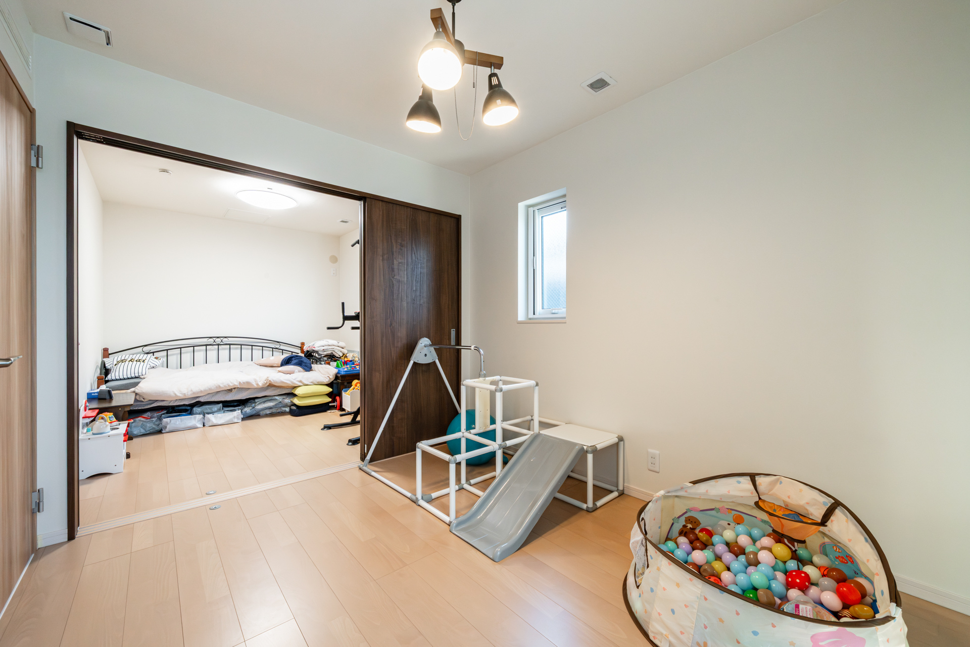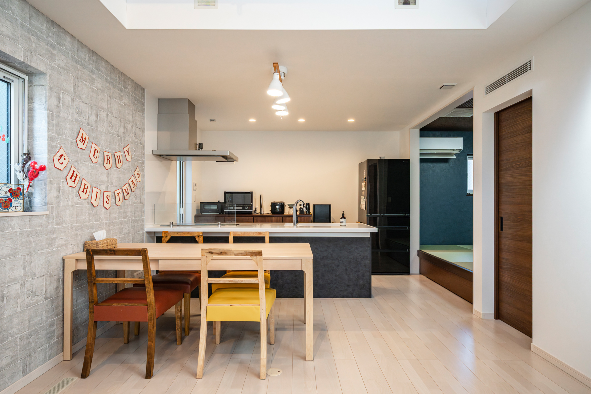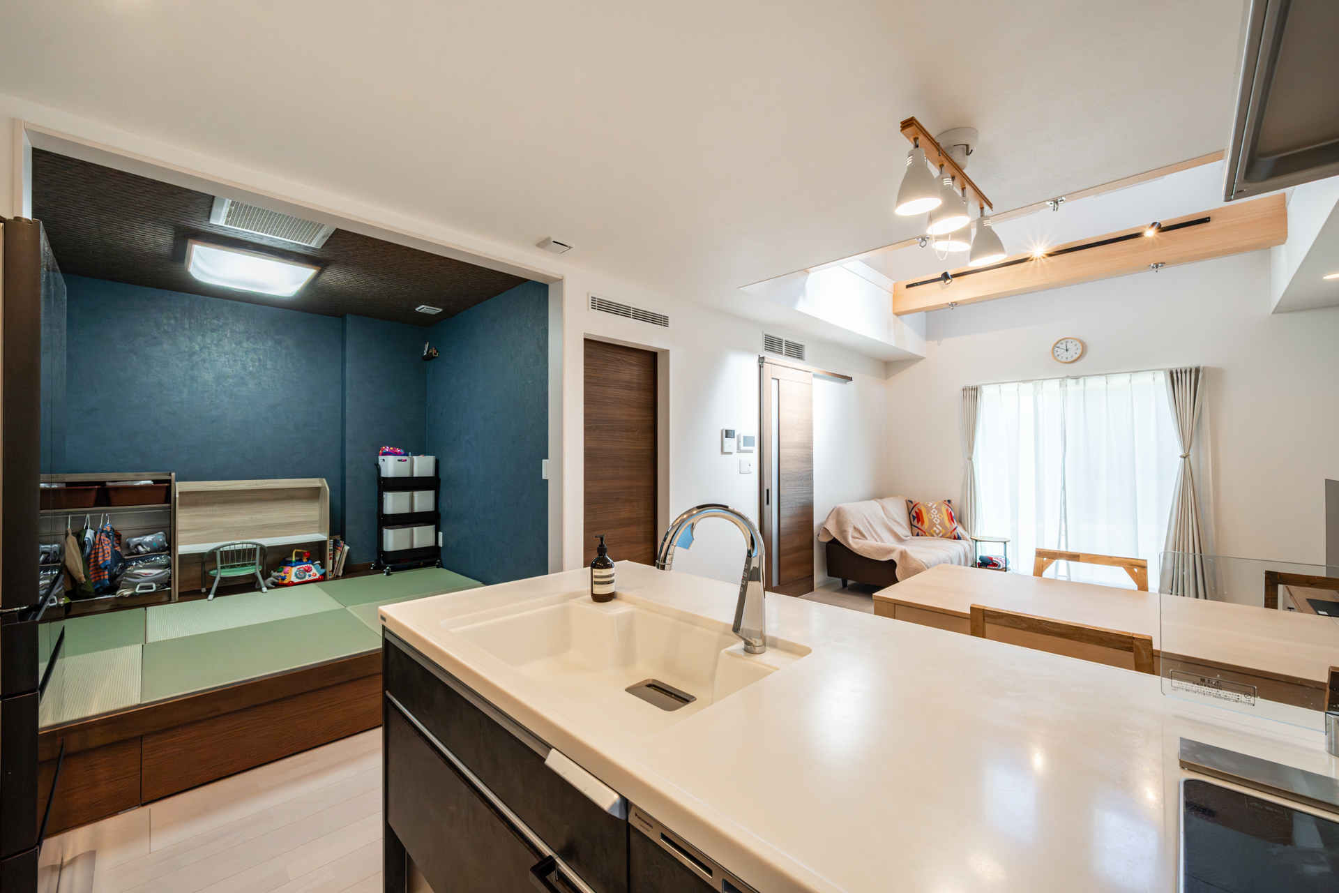 - 小上がり和室は下部収納で片付けやすく、キッチンから子どもの様子も見守れる