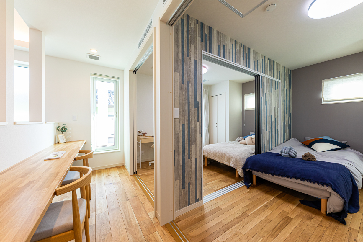 - 空間を活用した多目的室は、プライベートな占有空間を実現。家族の気配を感じながらもリラックスできます。