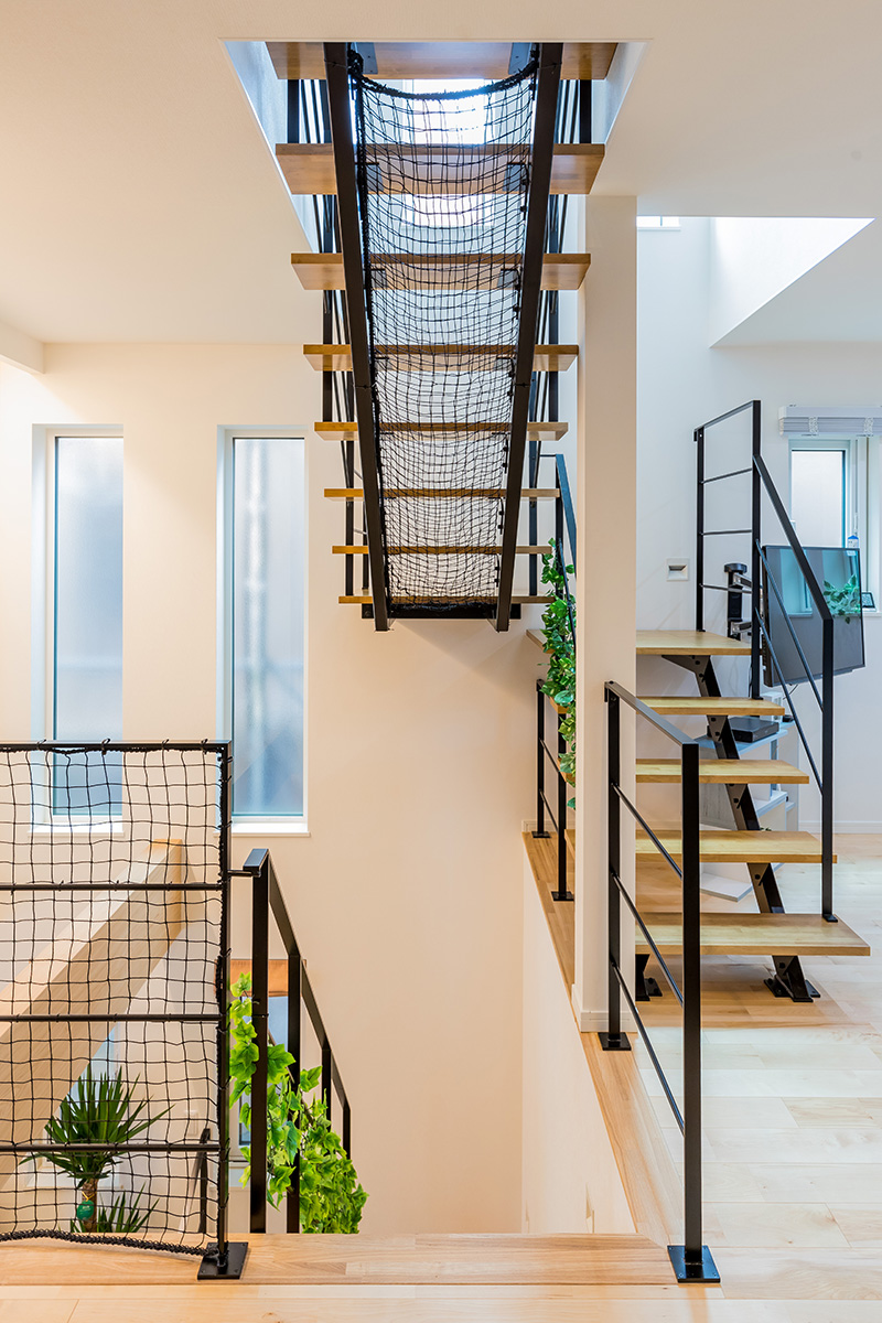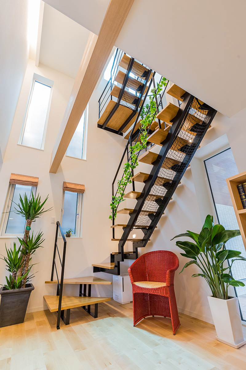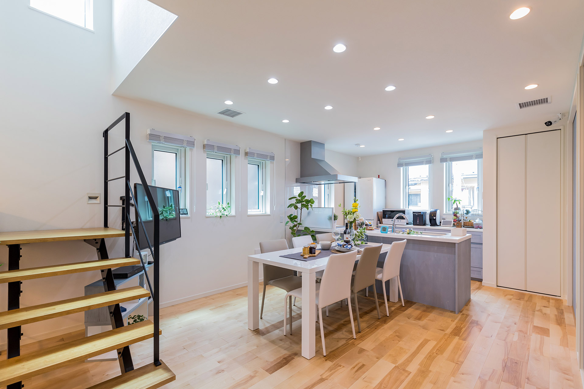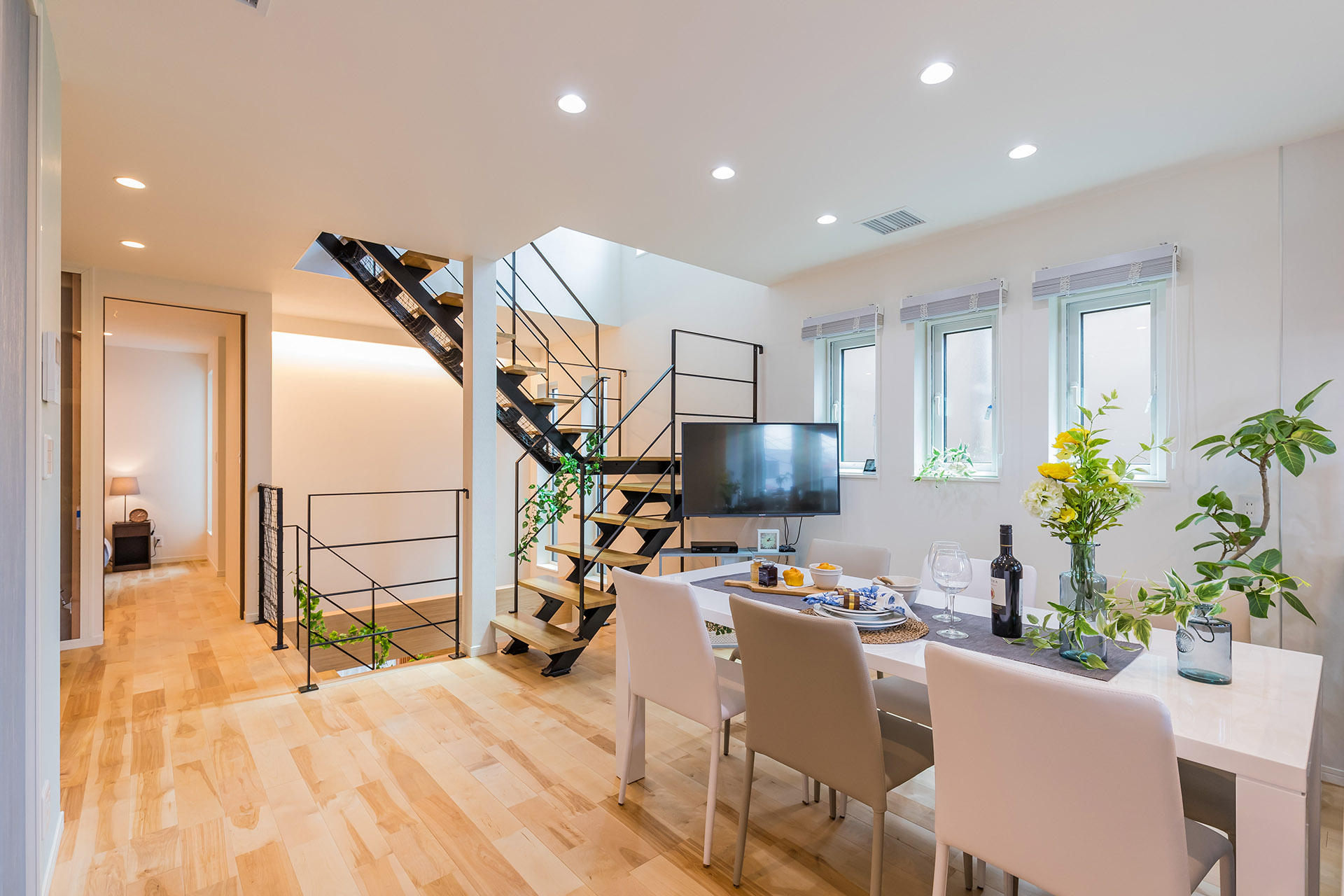 ストリップ階段/吹き抜け/ダイニング/キッチン