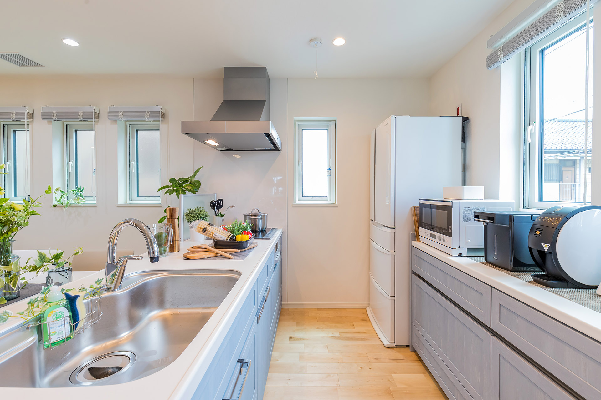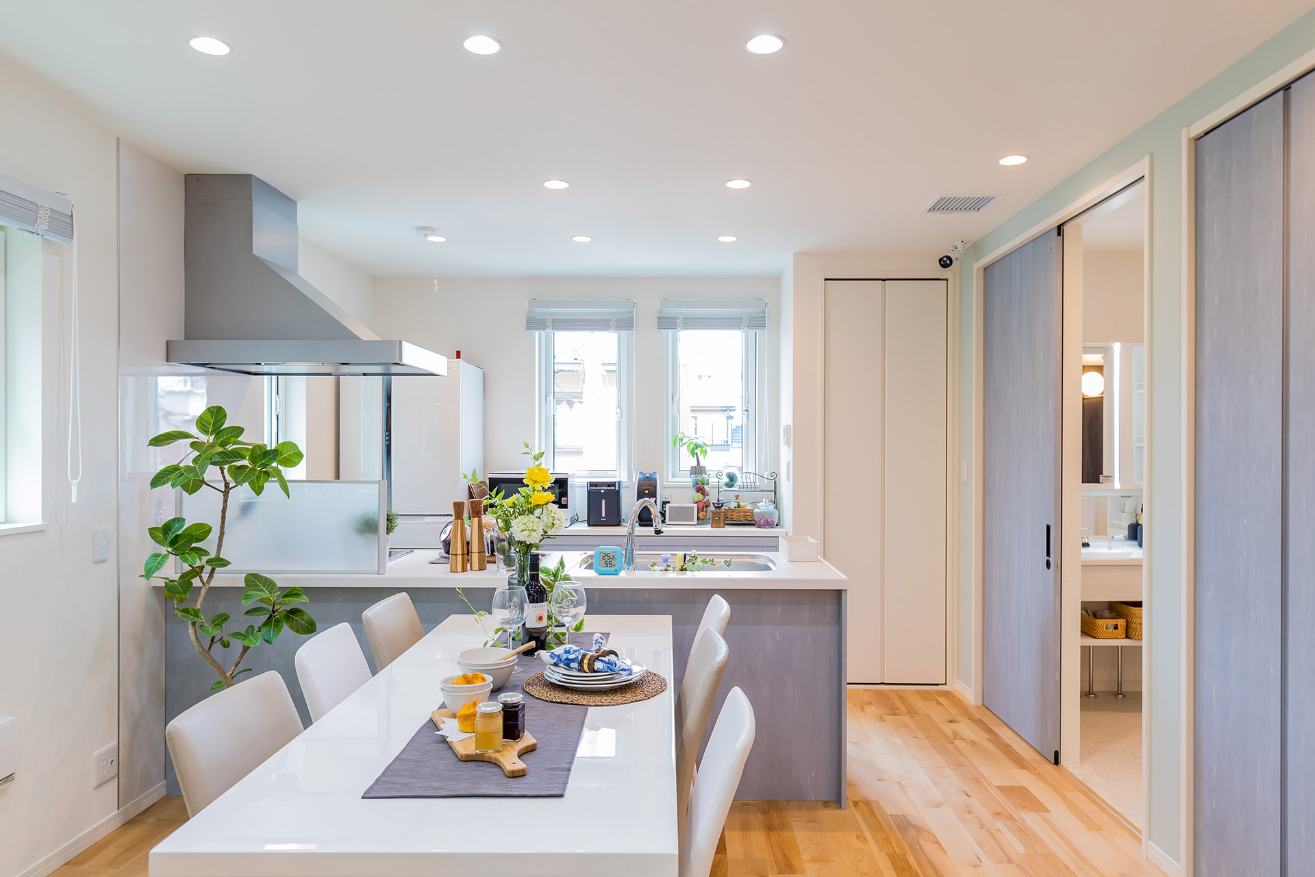 - キッチン・洗面・浴室の水廻りとフラットにつながる主寝室は、ホテルのような暮らしやすさ。効率的な“家事動線”と心地よい“生活動線”に配慮した、共働きご夫婦にも優しい間取りです。