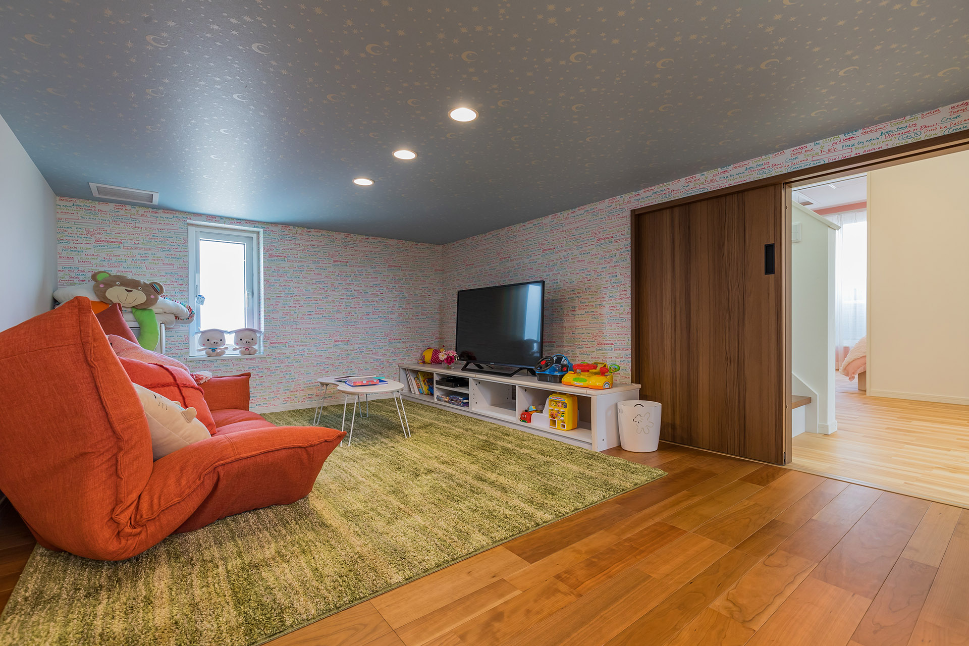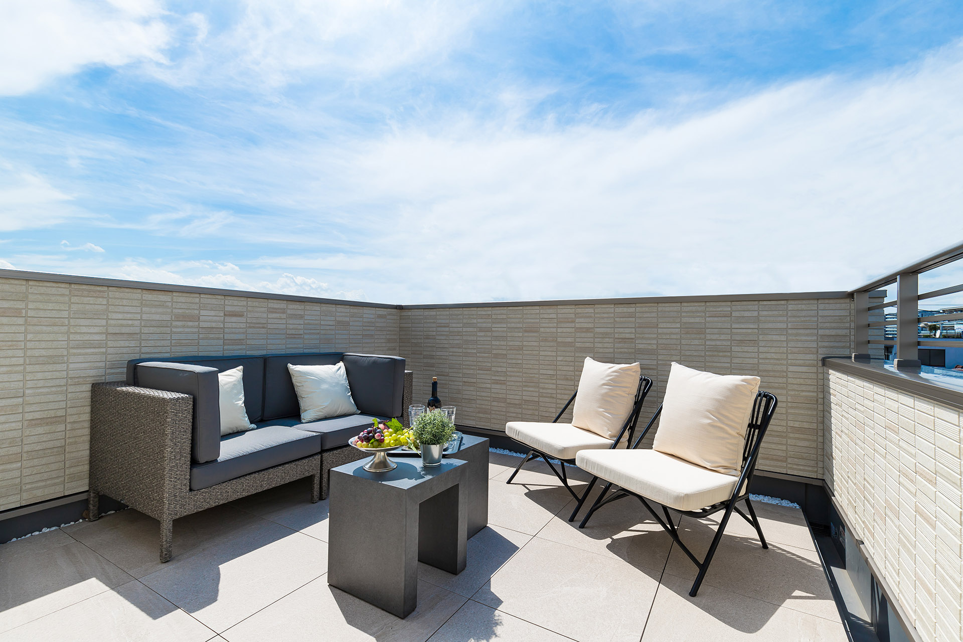 - 休日には友人を招いてシアタールームで映画鑑賞、夜には屋上で星を眺めてリラックス。帰宅時に顔を見て話せるリビング階段と、多目的に集える空間があれば、自然と家族の会話も生まれます。