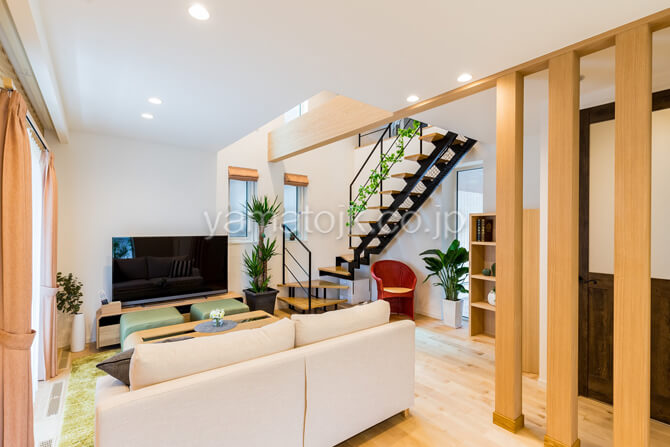 - 1階から3階まで、どの場所にいても一年中春のような心地よさ。『高気密・高断熱住宅 エネージュ』×『ルームエアコン1台の全館空調』だから大きな吹抜けのあるリビングも、快適な温度が保たれます。