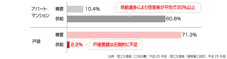 現在の賃貸市場は圧倒的に“戸建賃貸” が不足しているといえます。