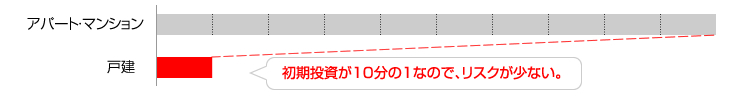 敷地20 坪からでも建設できる戸建賃貸は、アパート・マンションの建設にかかる費用の1/10 程度で済みます。