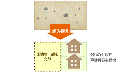 また、所有している土地の一部を売却し、その資金を使って残りの土地に戸建賃貸を建設することも可能。新たな資金調達を抑え、リスクを低減することができます。