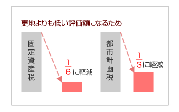 所有の土地に戸建賃貸を建設することで、貸家建付地や住宅用地、小規模住宅用地としての評価を受けることが可能です。更地よりも評価が低くなるため、固定資産税は6分の1、都市計画税は3分の1まで軽減されます。
