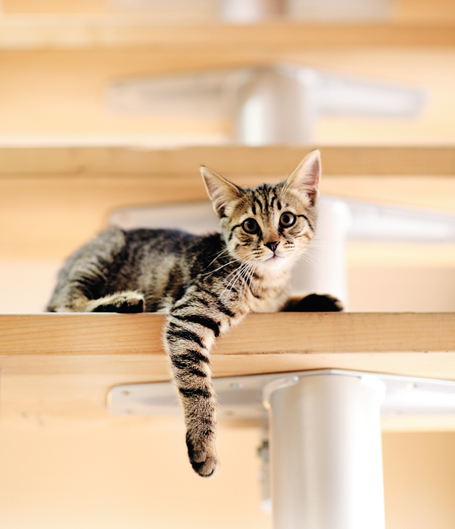 ずっと室内にいると猫は運動不足になってしまうので、大好きな高い場所へ上り下りが楽しめるキャットウォークやキャットタワーを用意してあげましょう。「縦方向」の空間を作ってあげる事で、猫にも家族にも居心地のいい距離感が生まれます。