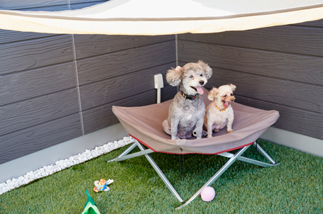 お外デビュー前の子犬の遊び場、サポートの必要なシニア犬が気分を変えてくつろぐ場所としてもぜひおすすめしたい外空間です。