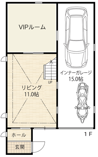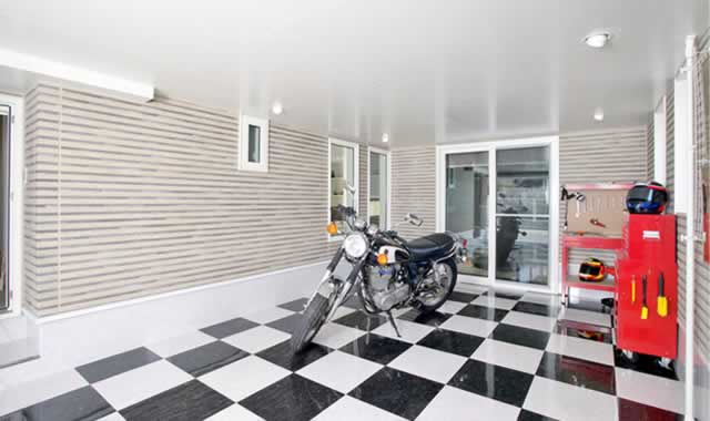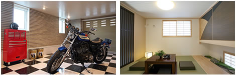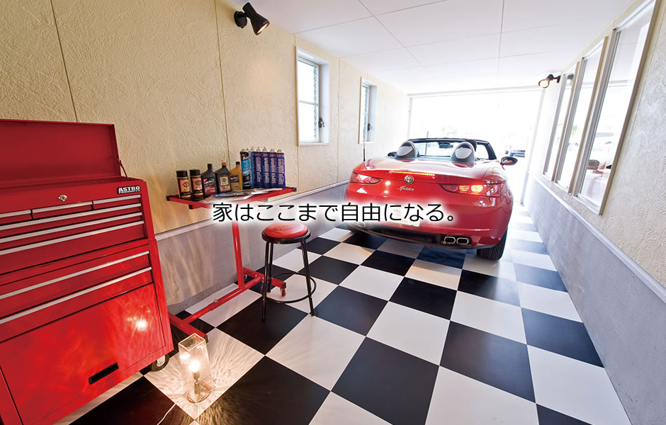 大切な愛車やバイクのためのスペース、 いつでも仲間たちが気兼ねなく集まれる空間、 家族で映画鑑賞を楽しむ一室、 趣味の手作り工房やショップを叶える1フロア。