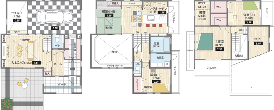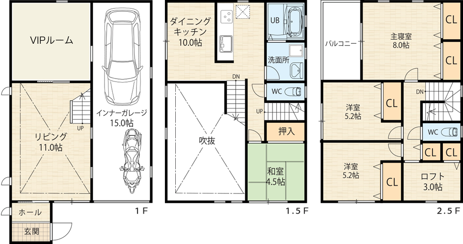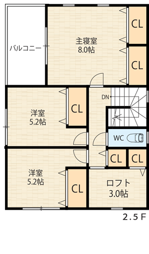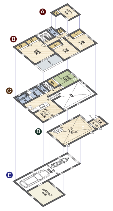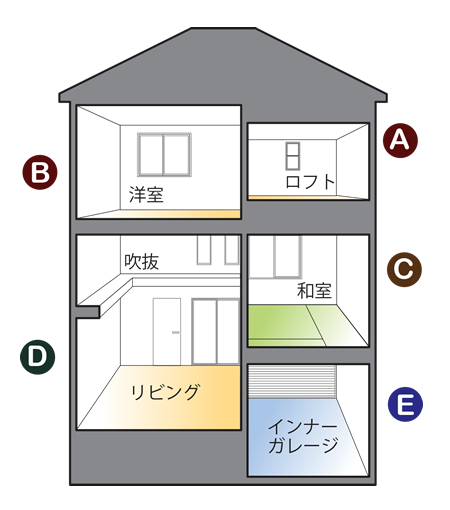 多目的ルームを生み出す2.5階建て。 スキップフロアだから広がる家族の夢。