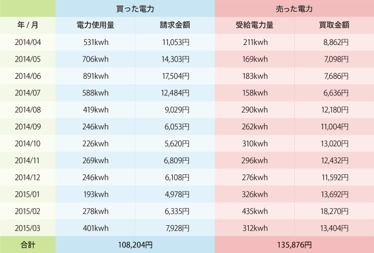 ※買取金額は自家消費後の余剰電力を売った金額です。