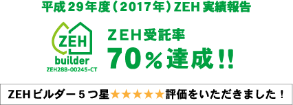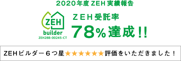 2020年度はZEH仕様の住宅受注率が78%となり、最高評価の6つ星を獲得いたしました。今後ともZEHの普及活動に努めてまいります。