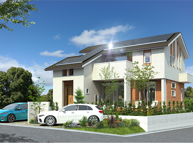 電気を自給自足化し、化石燃料を燃やさない地球環境に貢献できる住まい。それこそが、持続可能な住宅供給のあるべき姿と捉え、この思いにご共鳴いただける企業様との連携を経て、「未来の子どもたちのために地球環境を守る家」を開発いたしました。